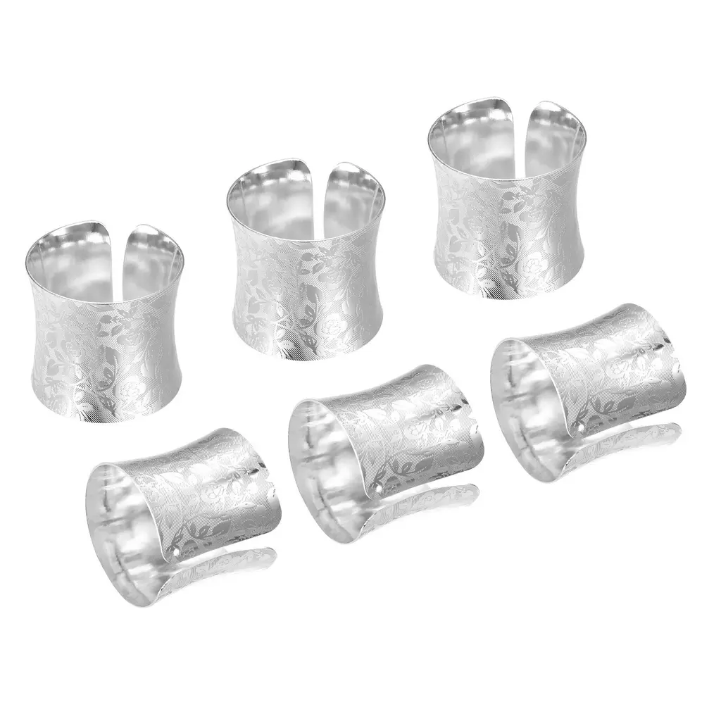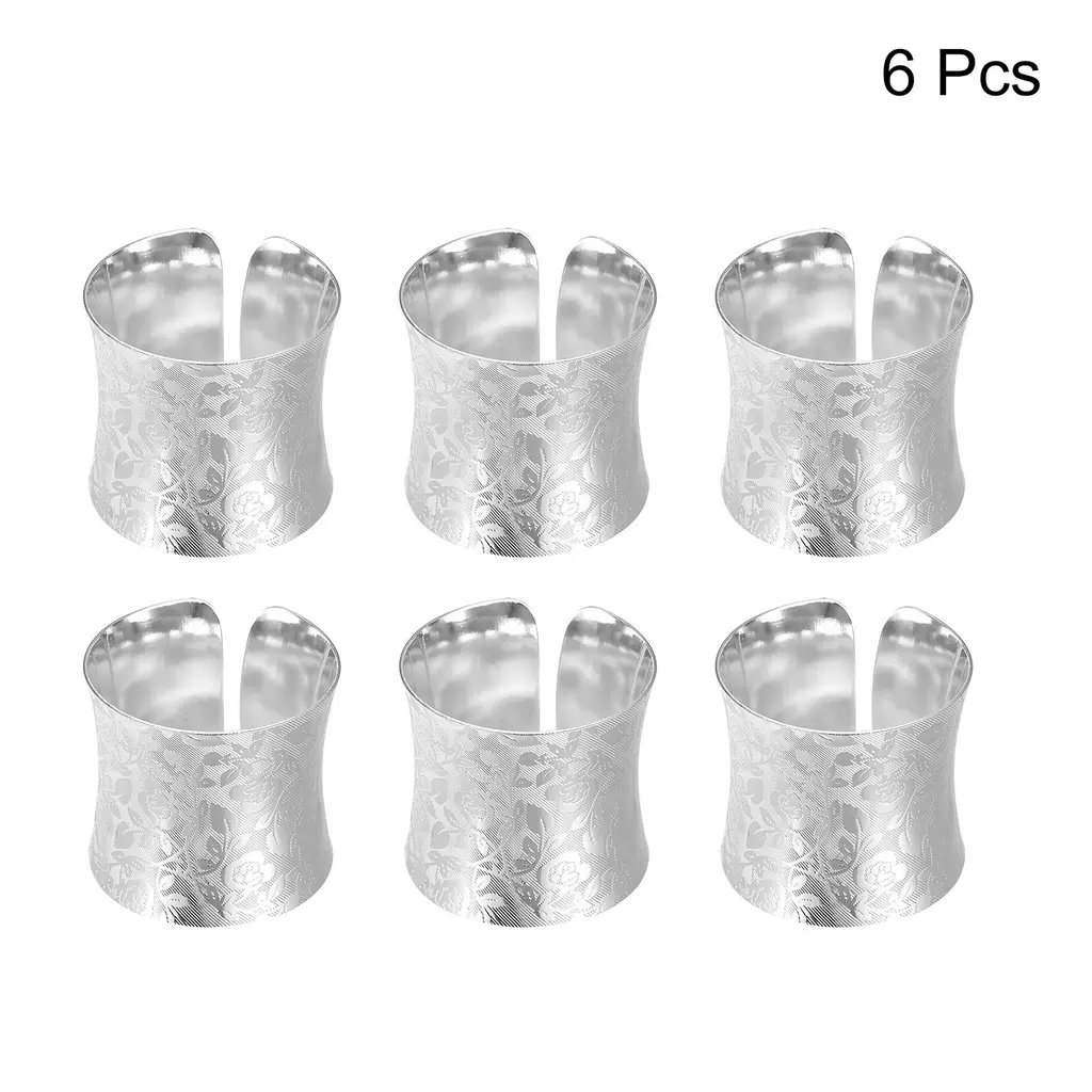 Metal Napkin Rings, 6Pcs Rose Open Napkin Ring Holder Set, Silver Tone - Silver Tone - 40mm - 40mm