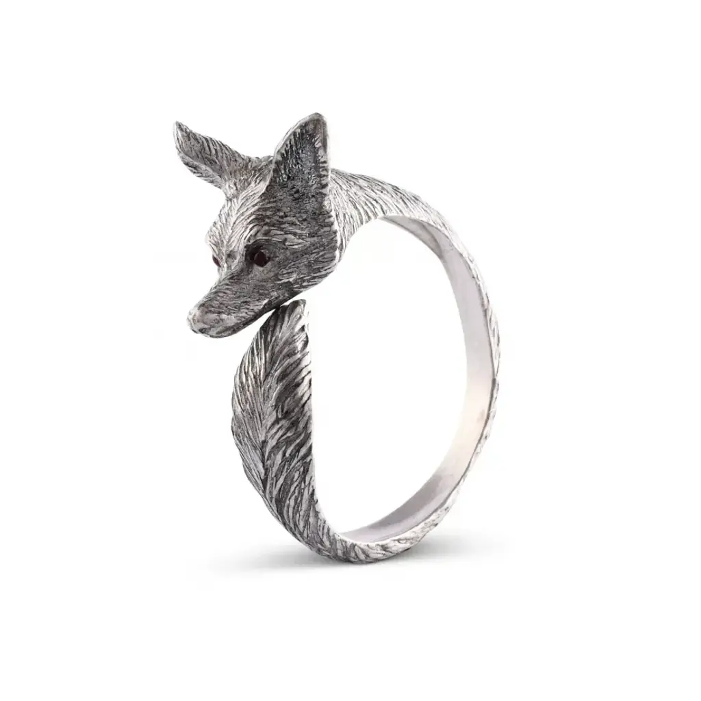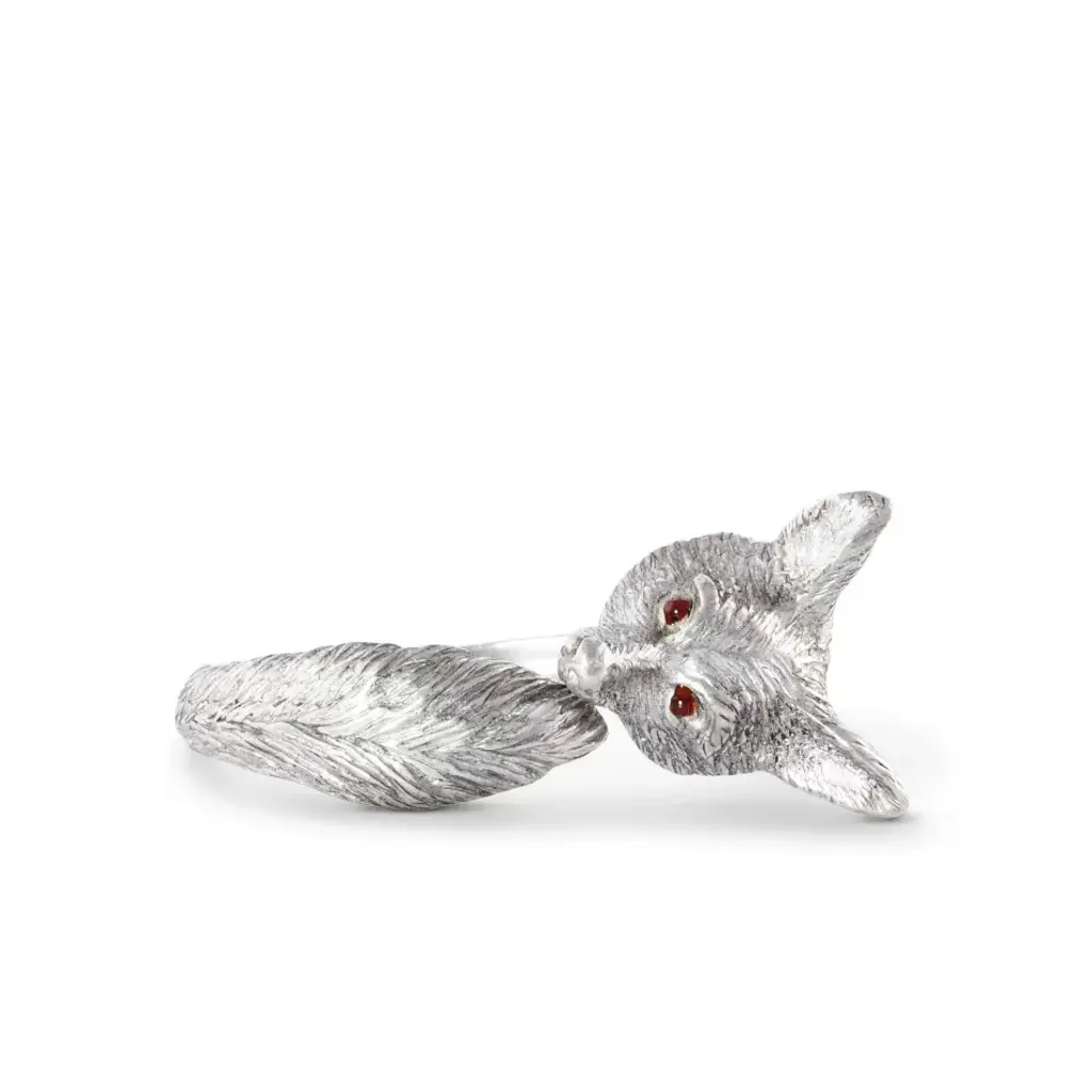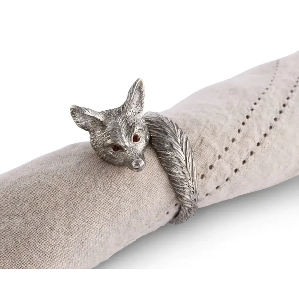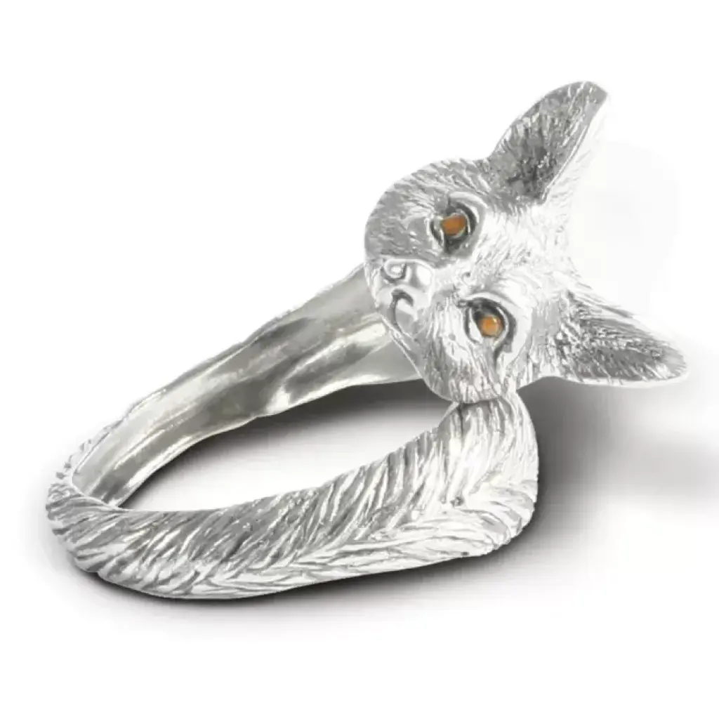 Vagabond House's Pewter Fox Napkin Ring features a delicately detailed figural fox face embellished with big, bronze eyes. When wrapped around a napkin, the ring finishes in a feathery detail pewter fox tail. Vagabond House is a family-owned American company specializing in fine pewter tableware, servingware and giftware. Largely inspired by nature, their exclusive products are designed to be unique, functional heirlooms for those who seek to express tradition and style in both family and formal entertaining.