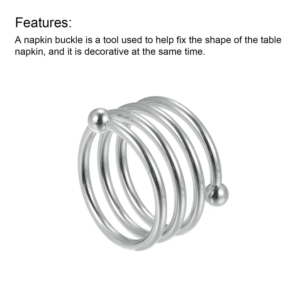Product Name: Napkin Rings; Material: Alloy; Color: Silver ToneOuter Diameter: 45mm / 1.77"; Inner Diameter: 38mm / 1.5"; Total Height: 35mm / 1.38"; Package Content: 12pcs x Napkin RingsDesign: The napkin ring is made of alloy, smooth surface, good decorative. Decorate a drab napkin to make it look more sophisticated.Features: A napkin buckle is a tool used to help fix the shape of the table napkin, and it is decorative at the same time. It can be used with the napkin, or it can be used alone as a decorative ornament, which can be reused.Application: Napkin ring is widely used in restaurants, reception, parties, cafes, dance parties, and other places, it is a good choice for decorations such as parties, weddings, Easter, Christmas, Thanksgiving, etc.Description:1. Design: The napkin ring is made of alloy, smooth surface, good decorative. Decorate a drab napkin to make it look more sophisticated.2. Features: A napkin buckle is a tool used to help fix the shape of the table napkin, and it is decorative at the same time. It can be used with the napkin, or it can be used alone as a decorative ornament, which can be reused.3. Application: Napkin ring is widely used in restaurants, reception, parties, cafes, dance parties, and other places, it is a good choice for decorations such as parties, weddings, Easter, Christmas, Thanksgiving, etc.Specification:Product Name: Napkin RingsMaterial: AlloyColor: Silver ToneOuter Diameter: 45mm / 1.77"Inner Diameter: 38mm / 1.5"Total Height: 35mm / 1.38"Package Content: 12pcs x Napkin Rings