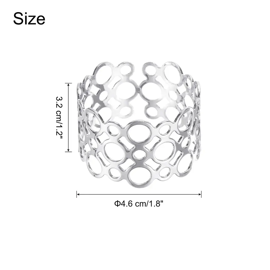 Napkin Rings Round Metal Hollow Napkin Holder For Dinner Table - Silver - 6Pcs - Set Of 6