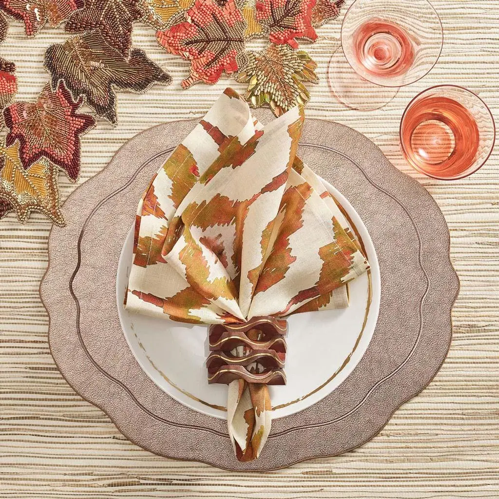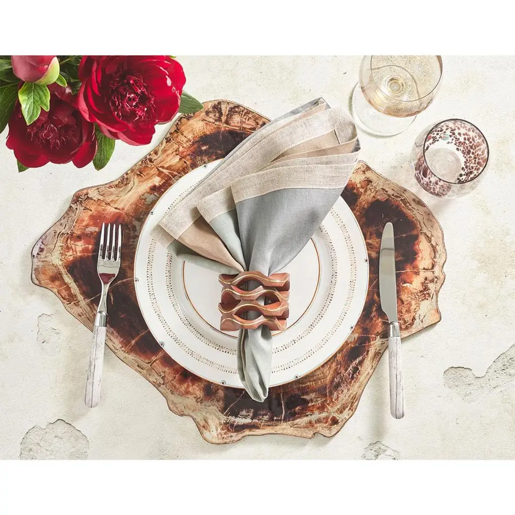 Pavilion Rustic Brown Wood Napkin Ring - Set Of 4