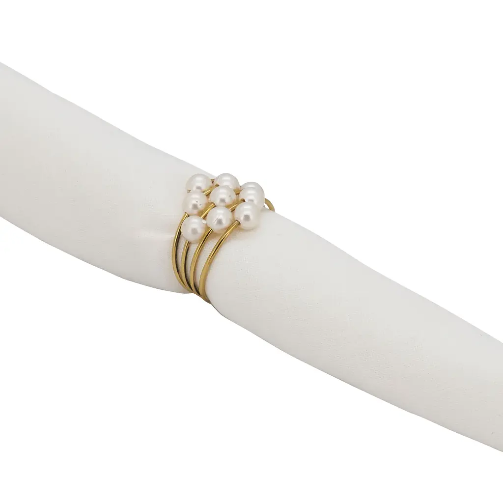 This stylish, delicate set of Pearl Design Table Napkin Rings elevates the look and feel of your tabletop, bringing an elegant note to each and every place setting at your dinner table. The multiple rings bring dimension to the decor, while the pristine white pearls add a refined touch. Pair the set with damask table napkins for an ultra chic effect.
