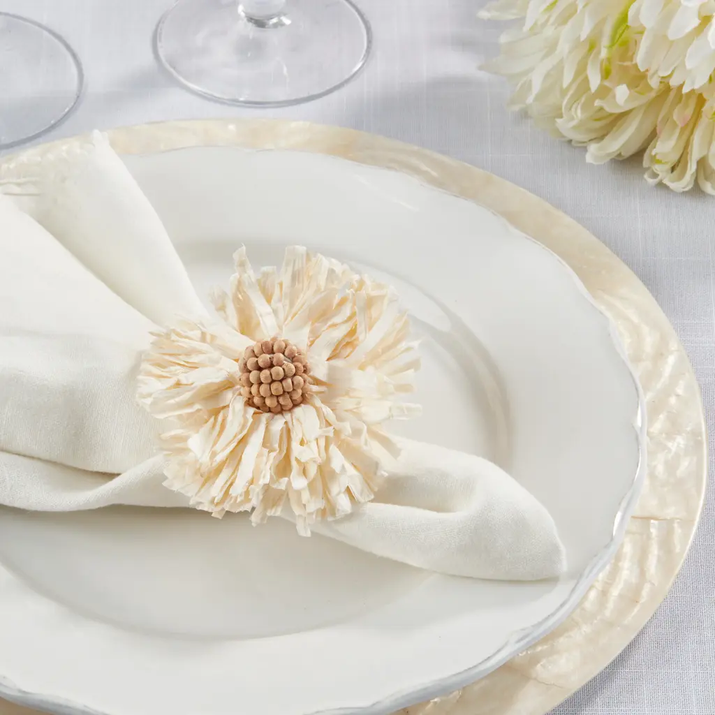 Introducing the Raffia Charm Napkin Rings - where rustic elegance meets your dining table. These meticulously crafted napkin rings feature a charming raffia design, adding a touch of natural sophistication to your table setting. Perfect for adding a hint of rustic charm to any occasion, these napkin rings elevate your dining experience and make every meal a delightful and memorable event. Embrace the warmth of natural textures with Raffia Charm Napkin Rings and transform your table into a cozy, inviting space, where every gathering feels like a warm and welcoming embrace.