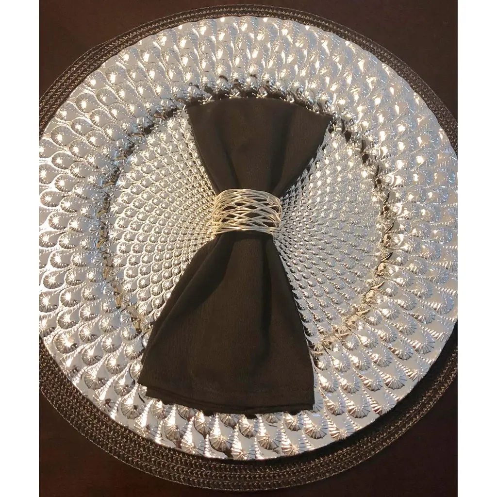 Elevate your dining experience with our Rangeene Handmade Artisan Crafted Mesh Metal Dining Napkin Rings in Silver. Each napkin ring is meticulously handcrafted with care, ensuring unmatched quality and durability. The flawless smooth alloy finish in silver adds a touch of elegance to your table, while the 2-inch diameter and 1.5-inch height fit all kinds of napkins, from cloth to disposable paper. Get creative and pair with flowers or mix and match with different colored napkins to add detail. Our napkin rings are perfect for both casual and formal settings, making every meal memorable. Ethically made in India and stocked and shipped locally from the US.Features: