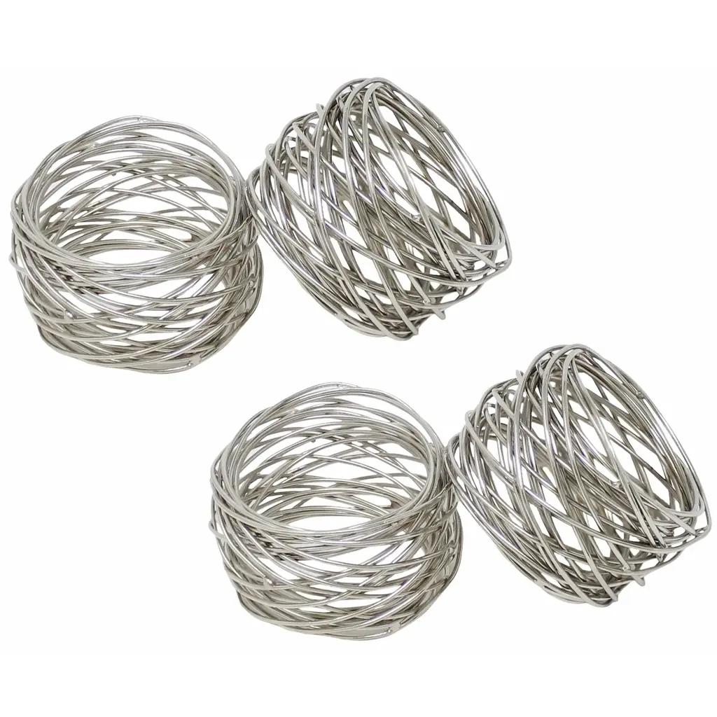 Rangeene Handmade Artisan Crafted Mesh Metal Dining Napkin Rings Silver - Set Of 4