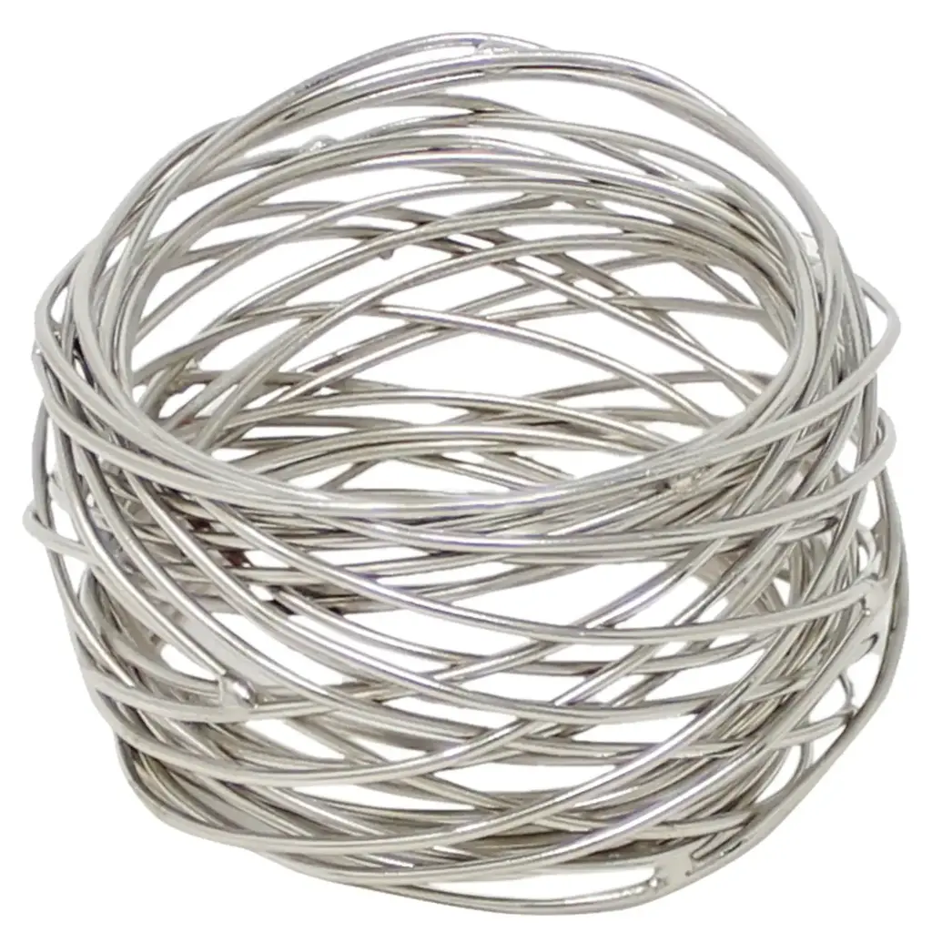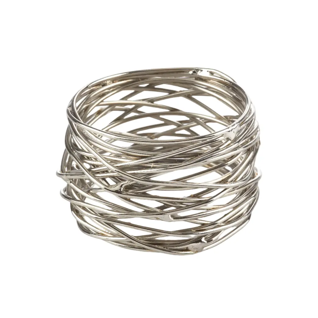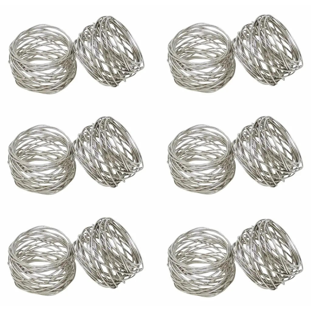 Rangeene Handmade Artisan Crafted Mesh Metal Dining Napkin Rings Silver - Set Of 6