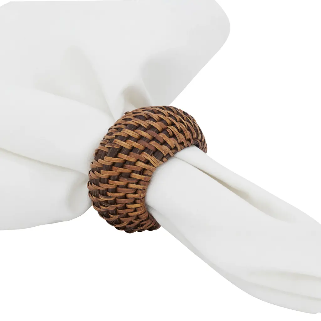 Add a beautiful, natural accent to your tabletop with these charming Woven Rattan Napkin Rings. The set is an easy and lovely way to highlight each and every place setting, lending it not just style, but also individuality. The set is easy to pair with a wide range of table linens and dinnerware, either in solid colors or colorful patterns.Features: