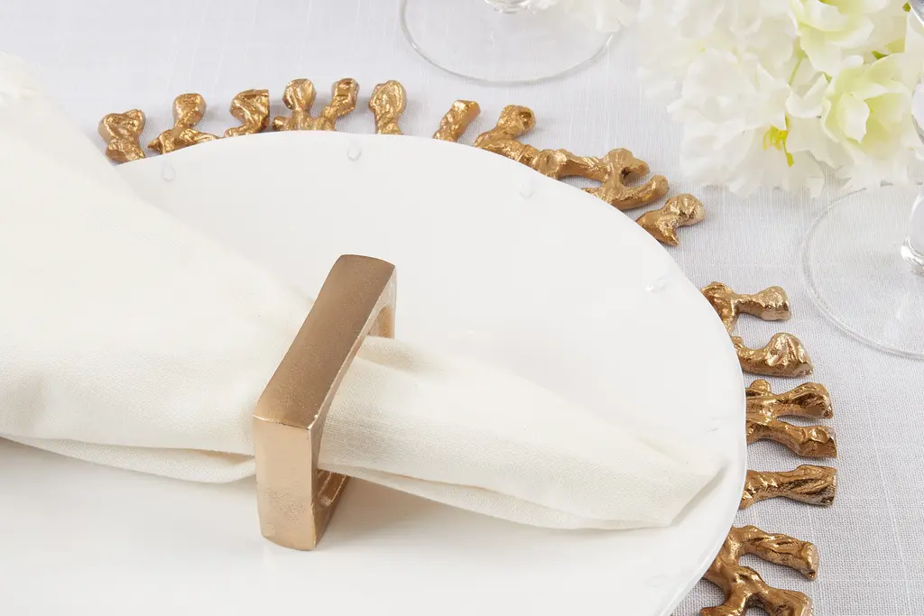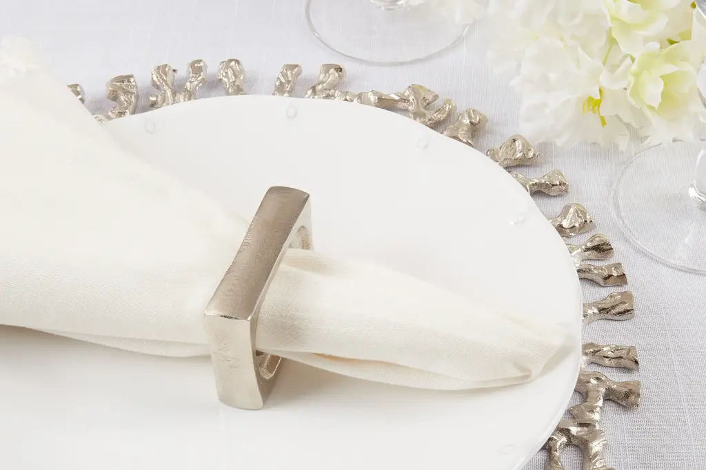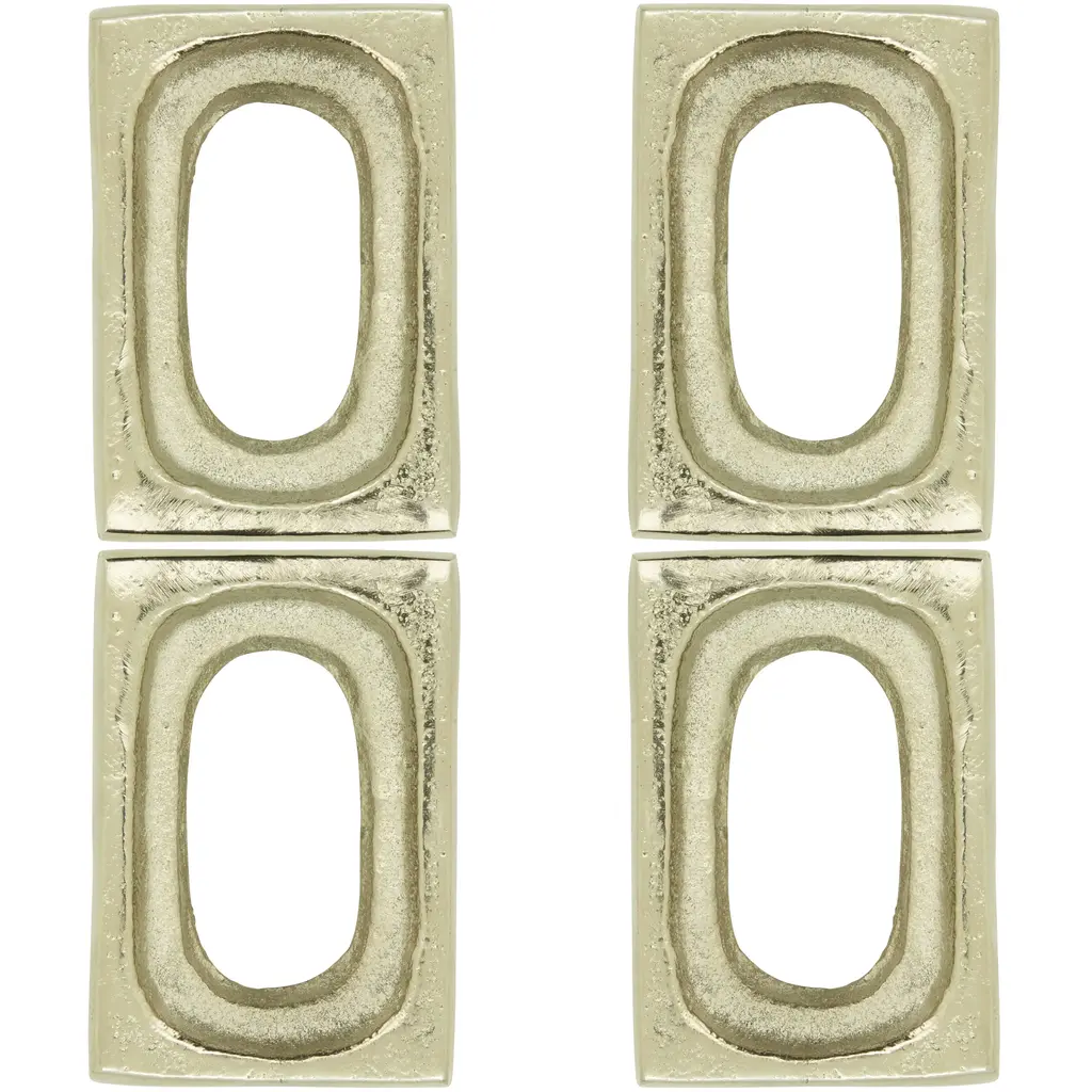 A modern addition to your dining setting, this fashionable set of Rectangle Design Napkin Rings is highly versatile and can be dressed up and down to fit the occasion. It features a metallic texture, which emphasizes each and every place setting. The set is easy to pair with a great variety of table linens.