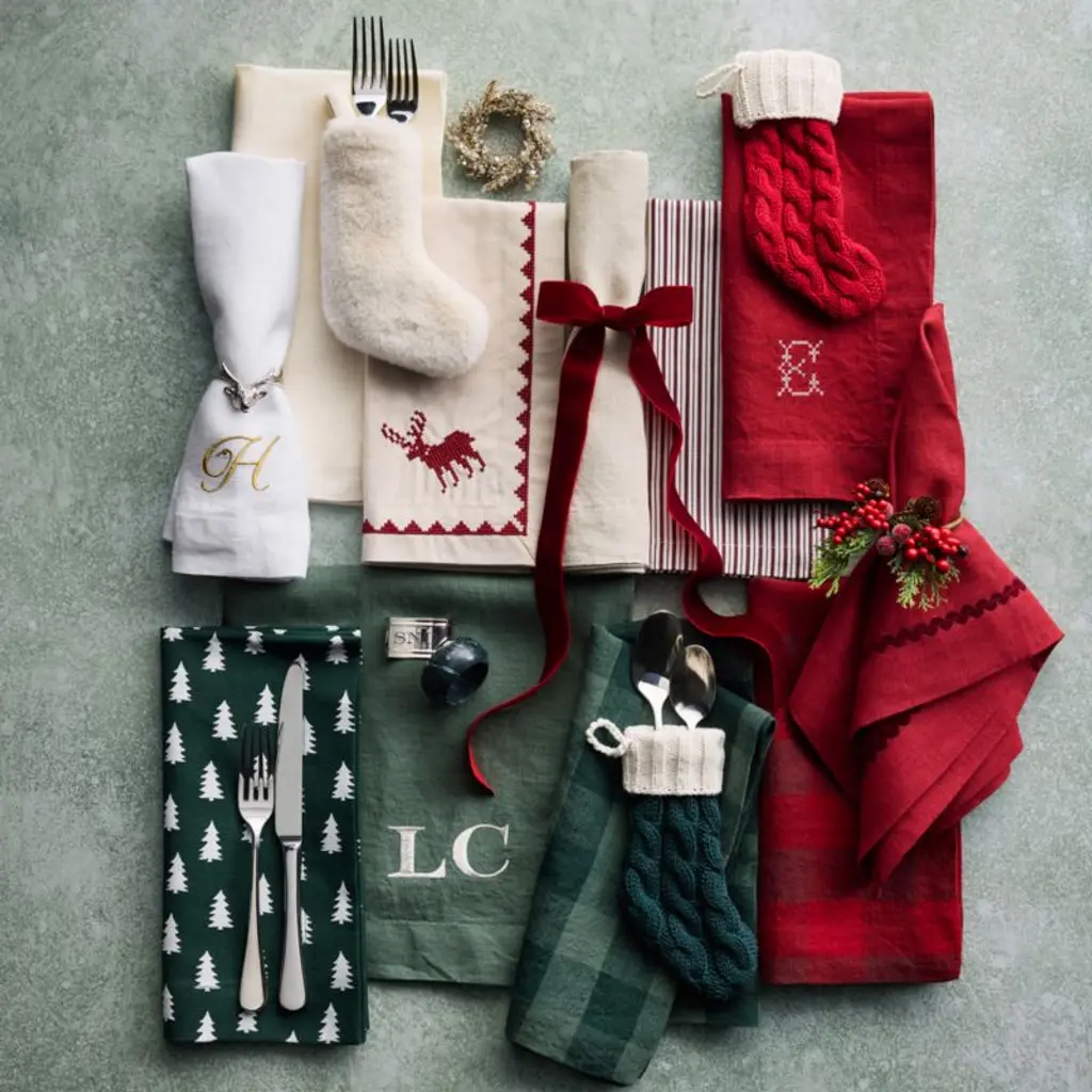 The classic elegance of a tied ribbon graces napkins with jewel-toned velvet. Fashioned with a simple bow and long, graceful ties, the red ribbon napkin evokes the beauty and excitement of a perfectly wrapped gift.