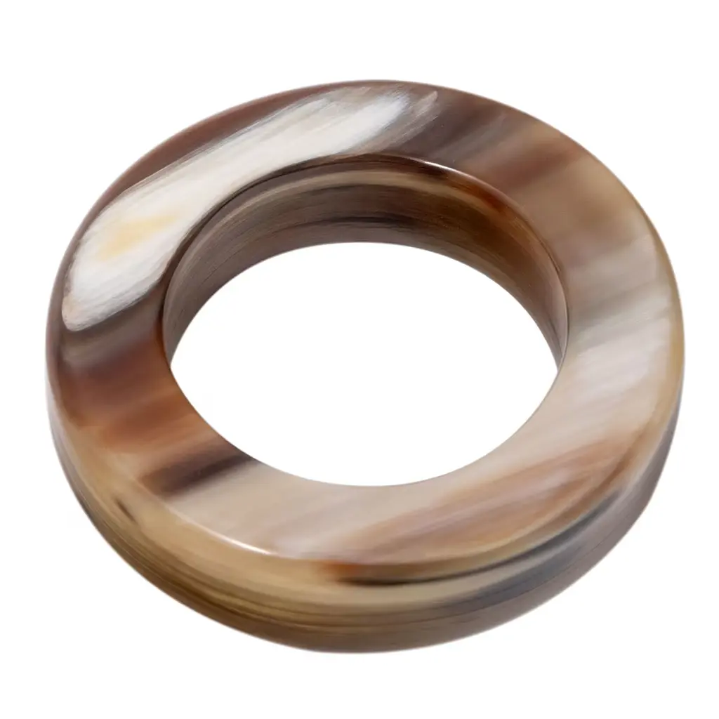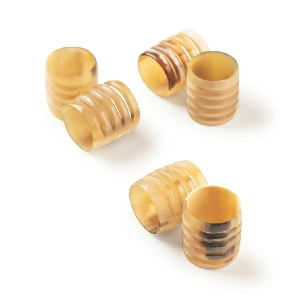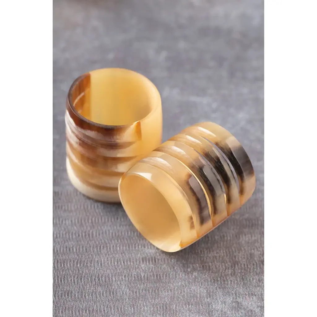 Whether you're dressing up your tabletop for a formal affair or creating a casual dinner vibe, GAURI KOHLI luxury animal horn napkin rings are a great finishing touch to your table décor. Our unique & beautiful napkin rings have a simple elegance that complements linens and table settings of any style. Product dimensions: 2.5" x 2.0" Product weight: 0.1 lbs. Material: Horn Color: Shades of brown Shape: Round Care: Wipe clean with a soft, dry cloth. Responsibly made: Celebrate and preserve craft traditions by supporting ethical handcrafts. Package includes: Set of six napkin rings