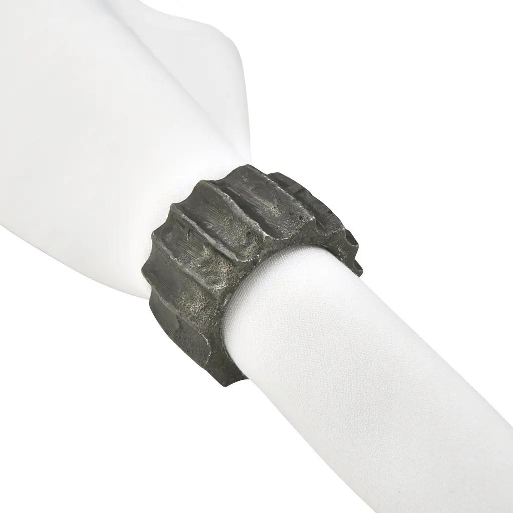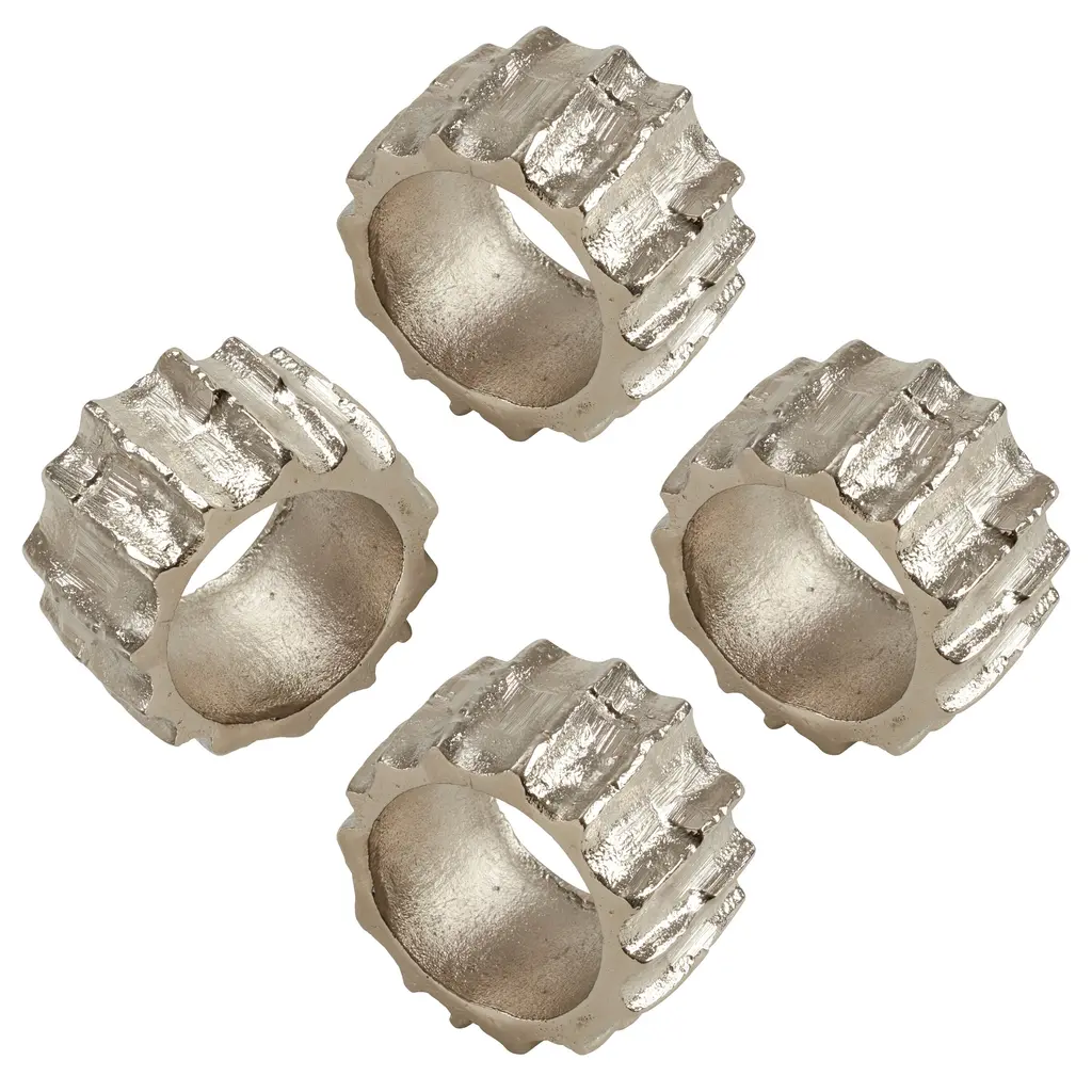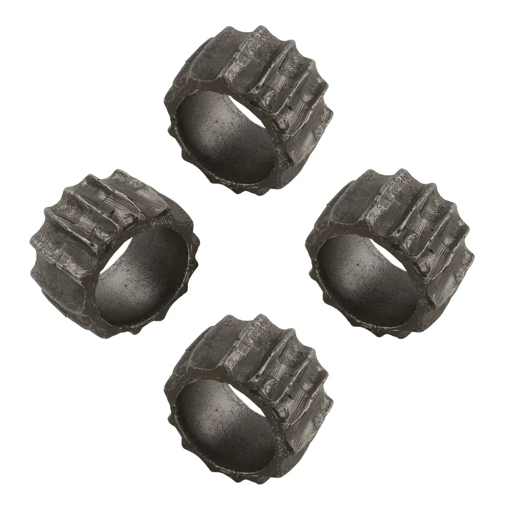 This modern set of ribbed napkin rings adds a distinctive touch to your tabletop. The sturdy, heavy constructions makes the set ideal for casual occasions, and even outdoor use. The set is easy to pair with a range of modern tableware.