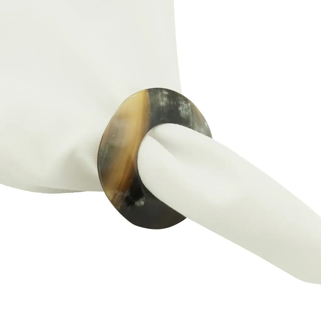 Distinctive markings and subtle variations in color make these gorgeous Round Horn Napkin Rinks truly unique. The set is highly versatile and easy to pair, which makes it a great choice for both everyday meals and special occasions. These beautiful accessories can be perfectly coordinated with a wide variety of table linens and dinnerware.Features: