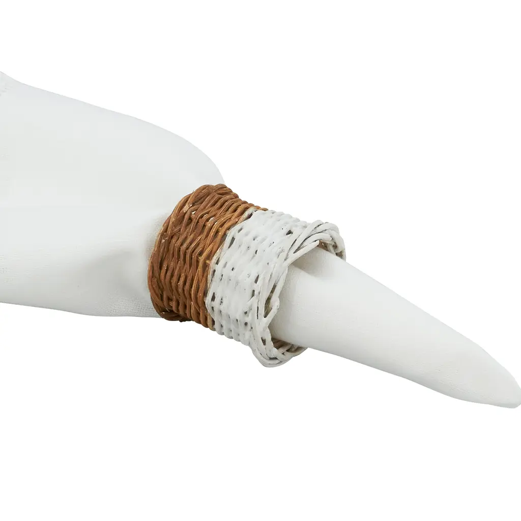 Add a touch of rustic charm to your table setting with this set of Two-Tone Rattan Napkin Rings. The unique two-tone design features woven rattan carefully crafted to create an eye-catching texture. Made from high-quality materials, these napkin rings are perfect for adding a pop of texture and sophistication to your table setting. Ideal for outdoor gatherings or any occasion, these napkin rings are sure to impress your guests and add a touch of island style to your table.Features: