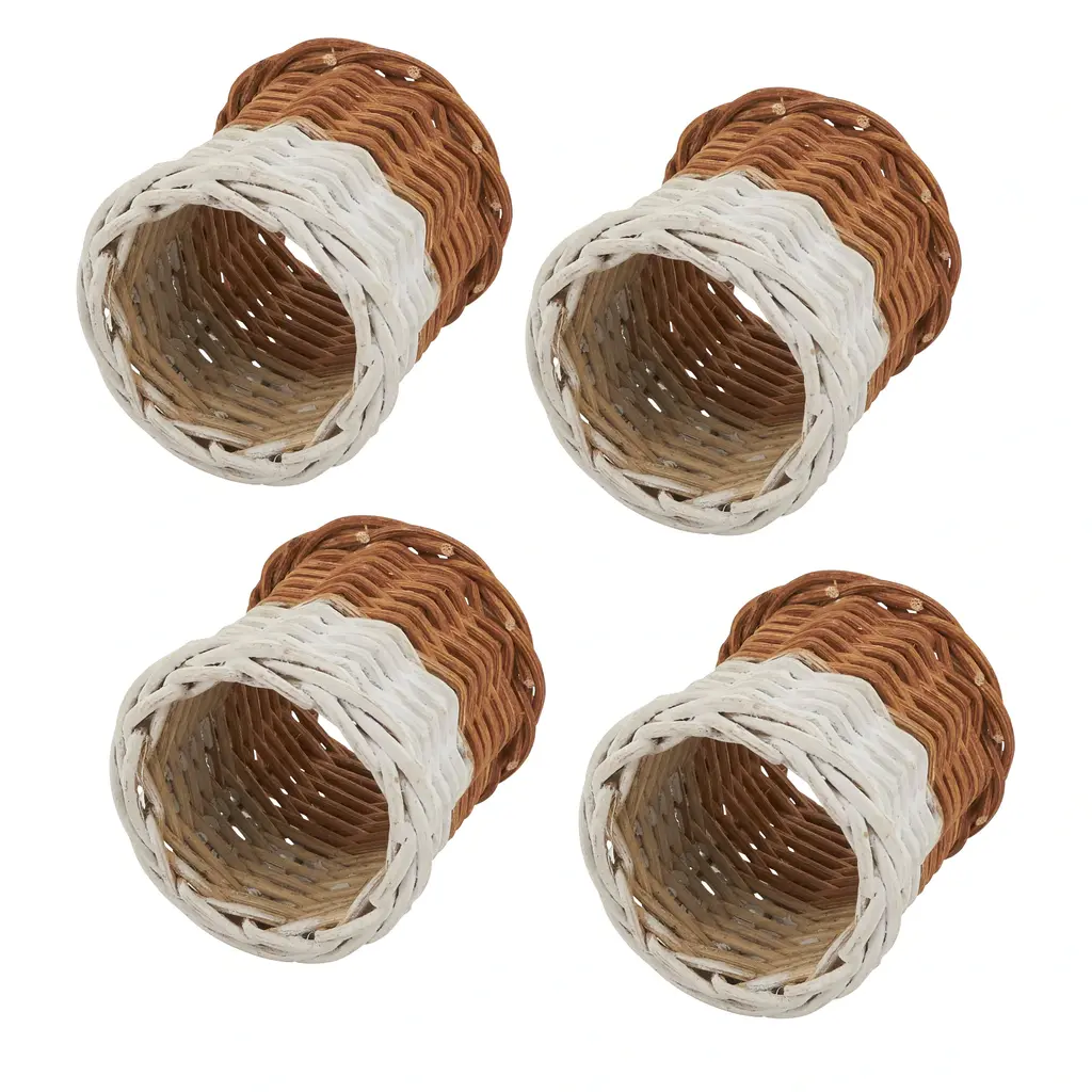 Rustic Woven Two-Tone Rattan Napkin Ring (Set Of 4) - Caramel - Set Of 4