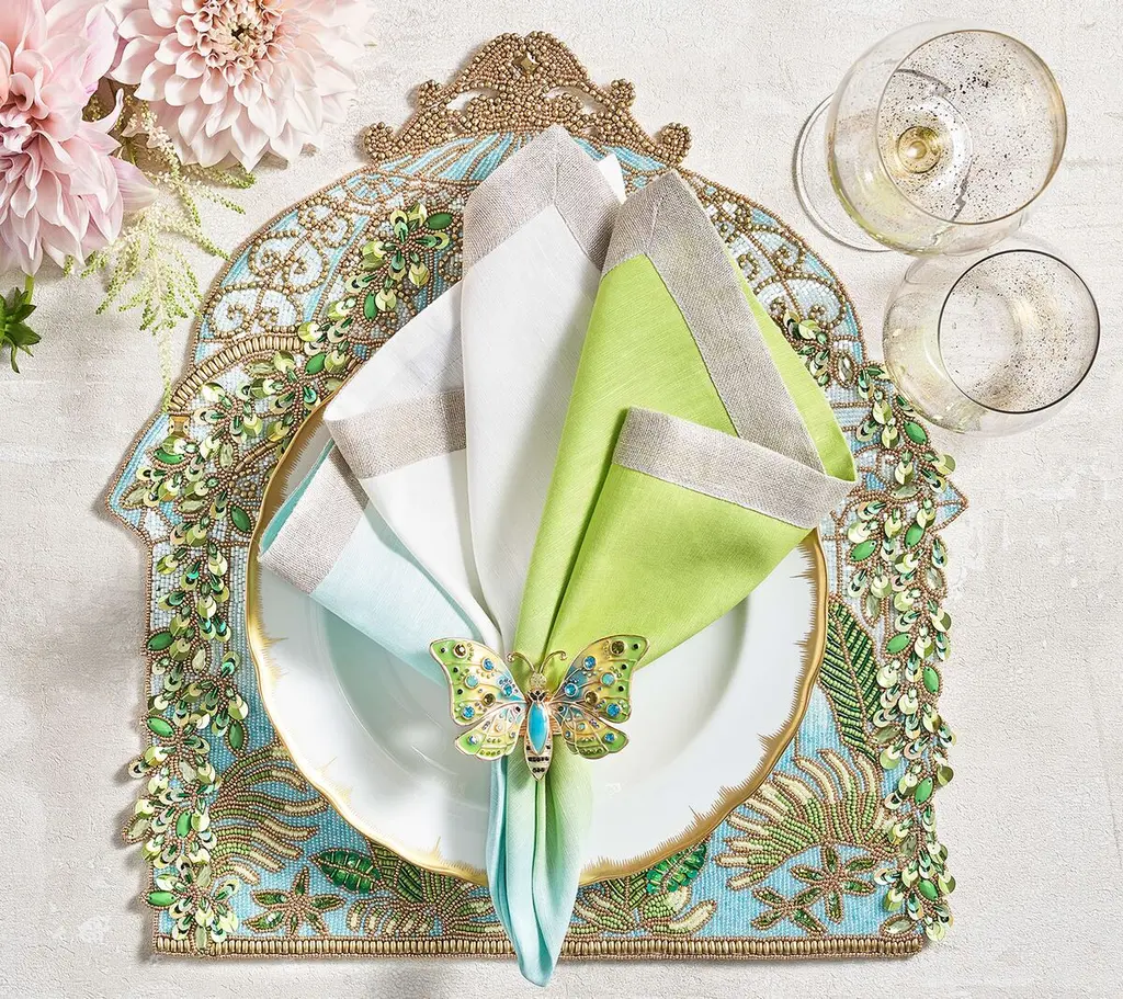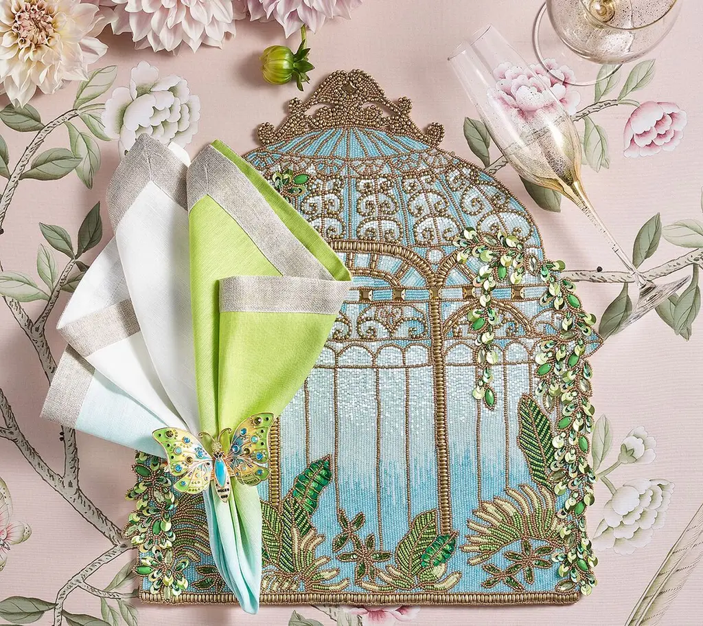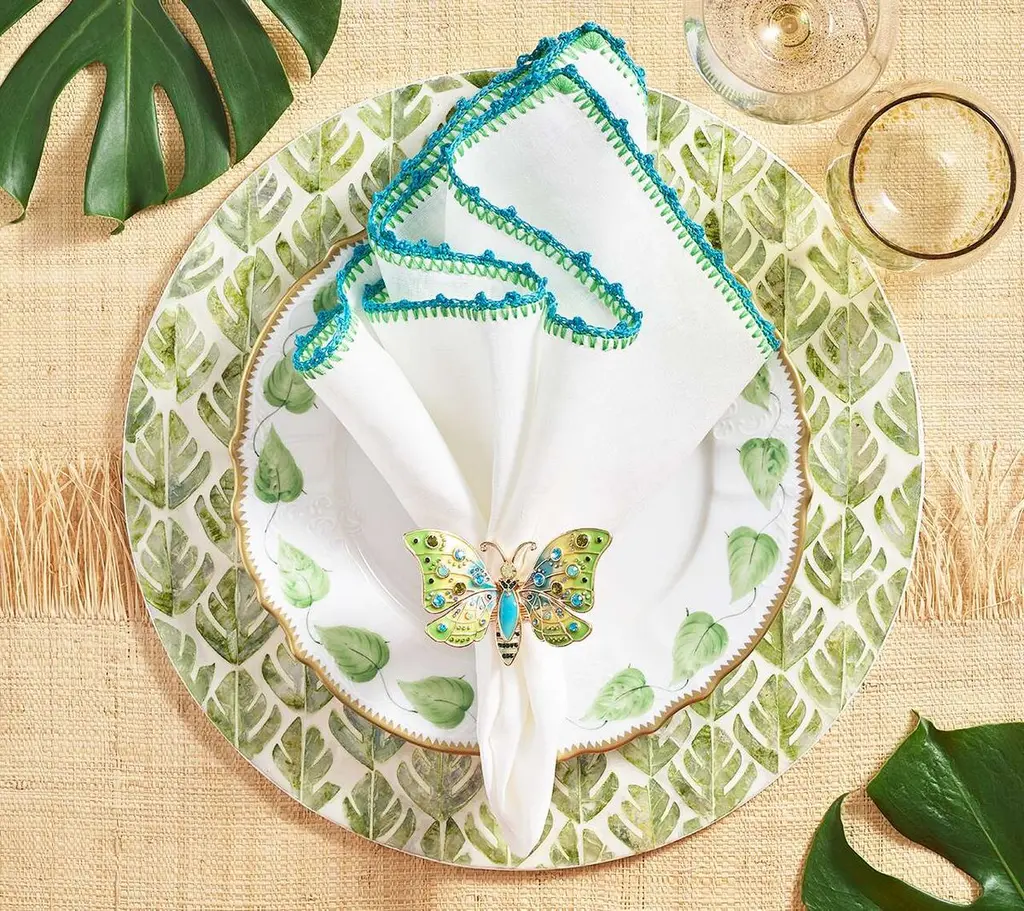 Inspired by the romantic beauty of abandoned Victorian greenhouses, the cast Arbor Napkin Ring features an exquisite butterfly with hand-painted enamel and rhinestone application. The perfect addition to a dreamy, whimsical setting.