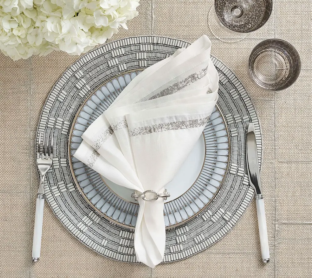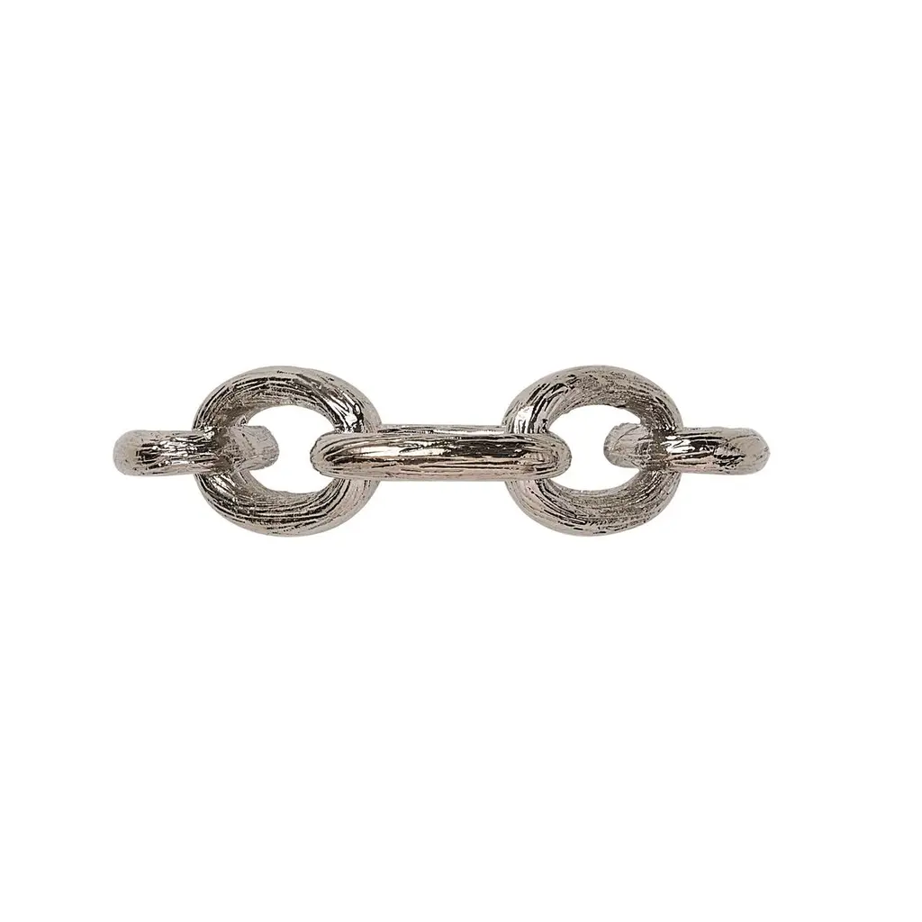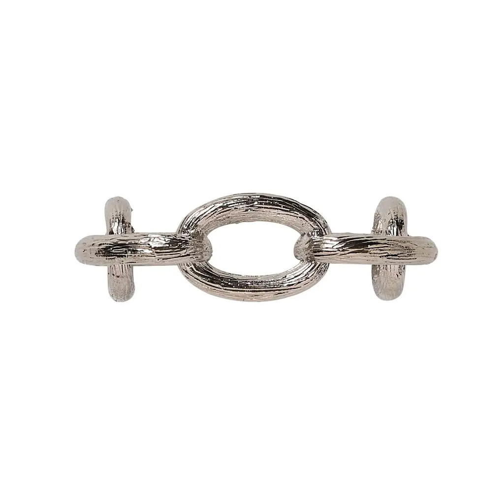 The Chain Link napkin ring draws inspiration from timeless chain-link jewelry. It highlights classic oblong-shaped interlocking rings. This statement piece complements many different napkin styles and colors, making it a must-have for anyone who loves to entertain and host parties.