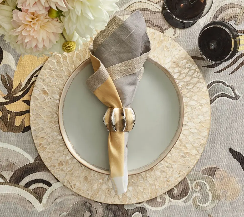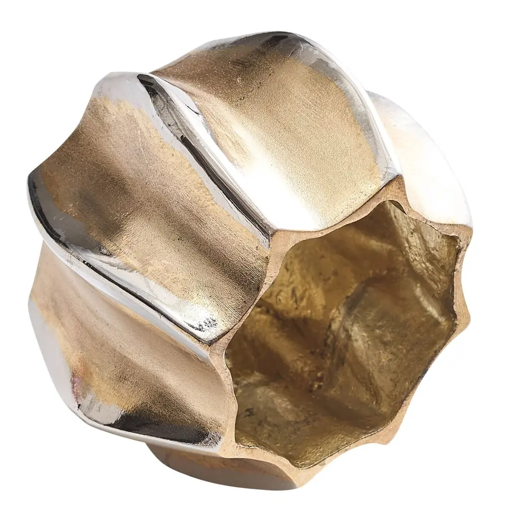 With their two-tone gold-and-silver finish, these four gleaming napkin rings will complement a wide variety of table settings.