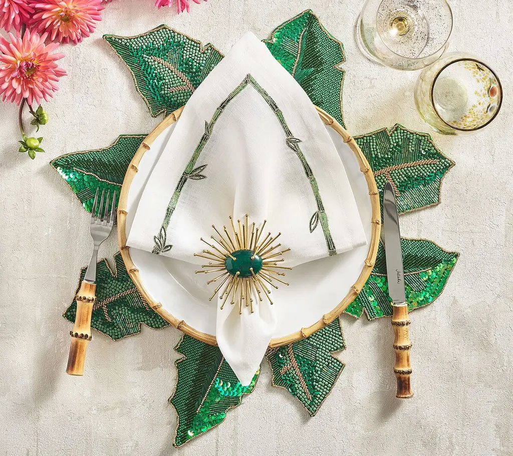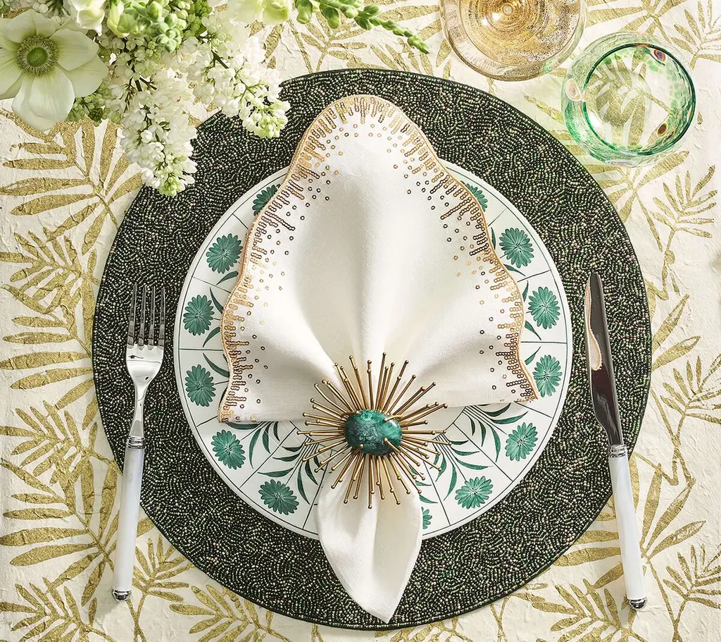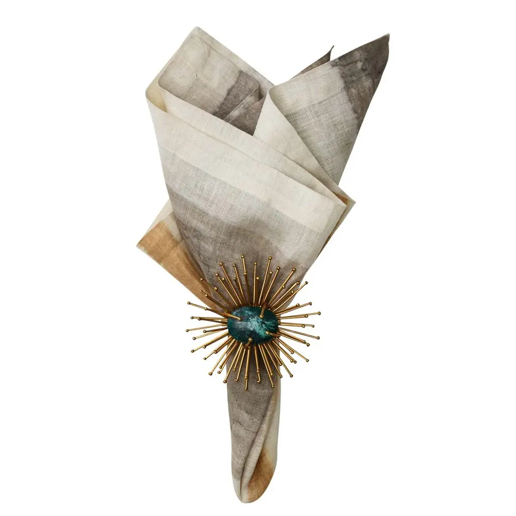 Never let it be said that a little drama is a bad thing, as in the brass spokes of this napkin ring emanating from a striking center. Bursting with energy, these vibrant napkin rings bring an instant energy to any place setting and are versatile enough to use for any occasion, large or small.