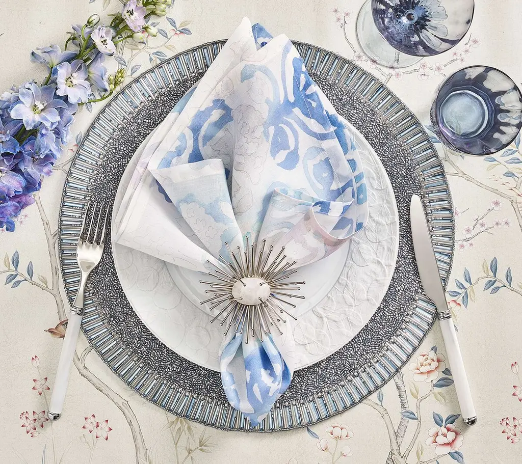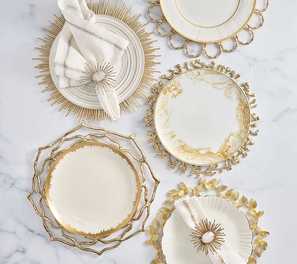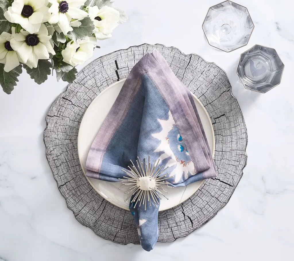 Never let it be said that a little drama is a bad thing, as in the brass spokes of this napkin ring emanating from a striking center. Bursting with energy, these vibrant napkin rings bring an instant energy to any place setting and are versatile enough to use for any occasion, large or small.