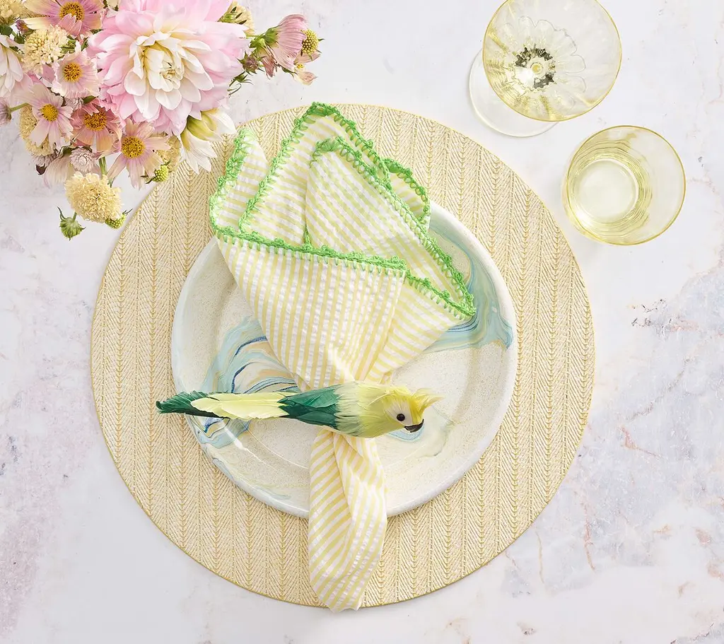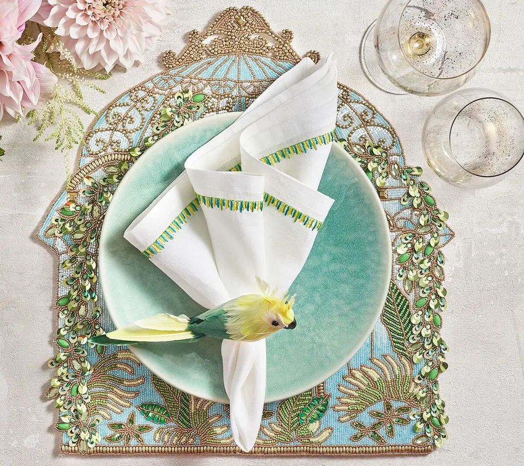 A new addition to the popular avian collection, the Parakeet Napkin Ring is a fantastical, brilliantly colored bird with vibrant plumes. The perfect addition to your springtime soiree.