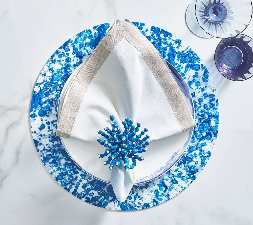 The hand-made, wooden beaded Reed Napkin Ring is the perfect addition to any coastal setting. Wooden beads are hand-arranged in a sea-inspired spray and sit atop a wooden square base.