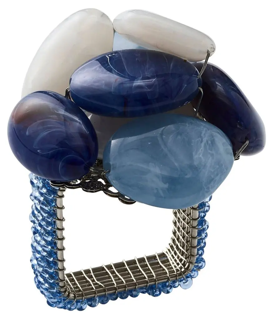 Embellished with clusters of blue-and-white resin stones, these napkin rings will add a lavish look to your table.