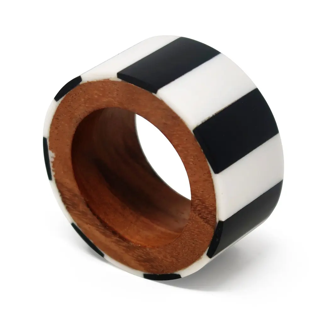 S/4 Wooden Napkin Rings Black & White - Set Of 4