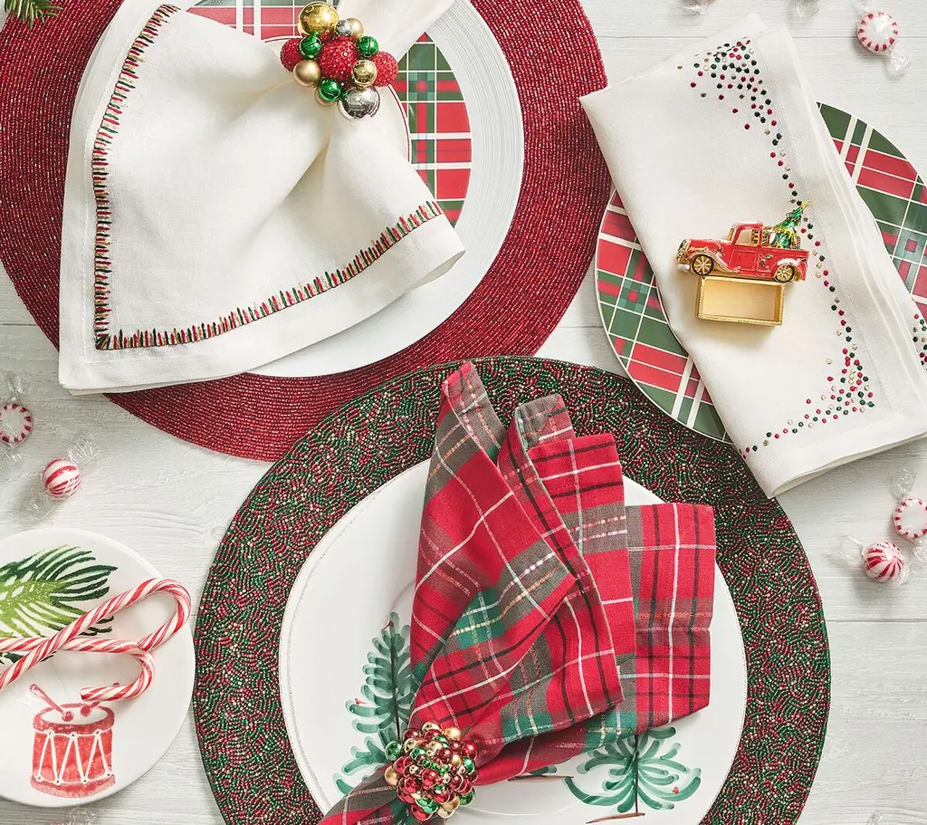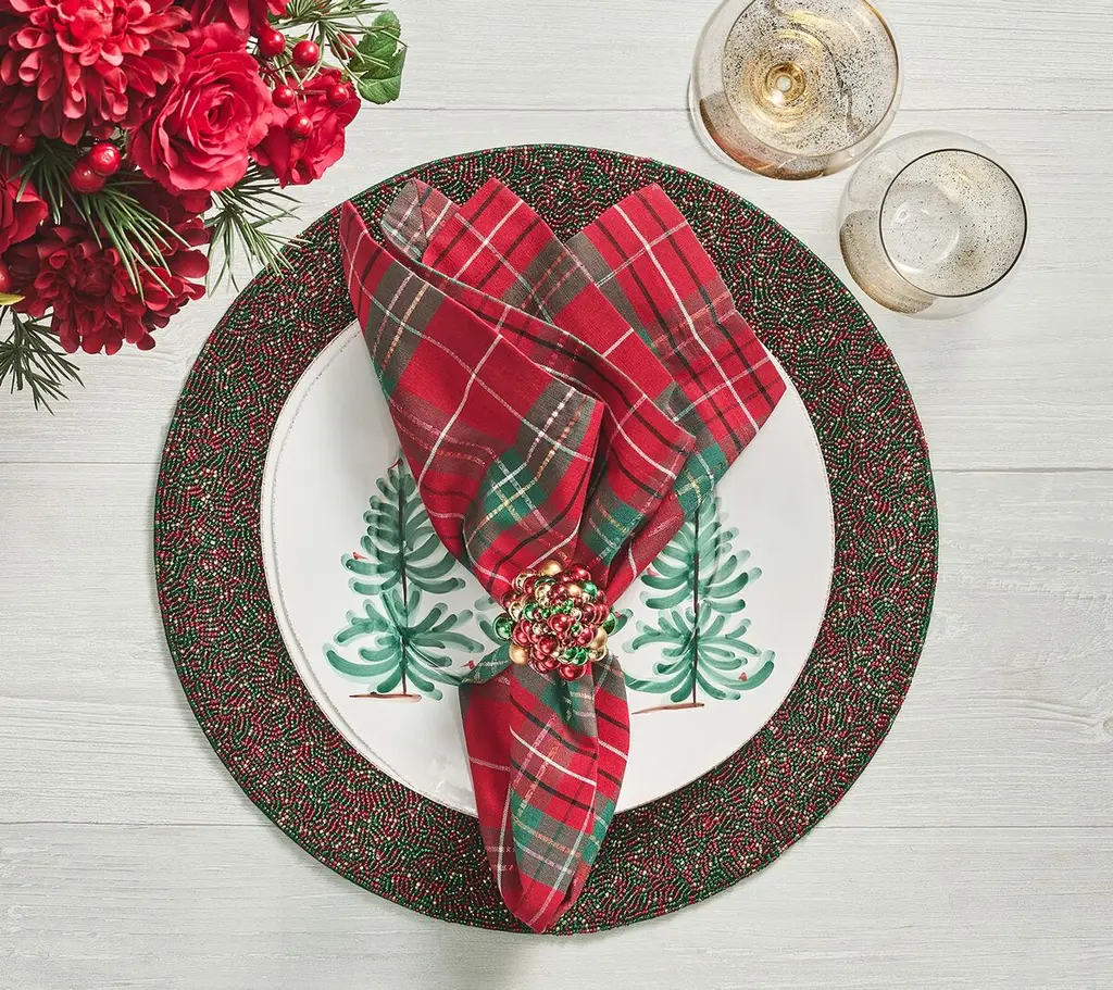 S/4 Xmas Baubles Napkin Rings In Red, Green & Gold