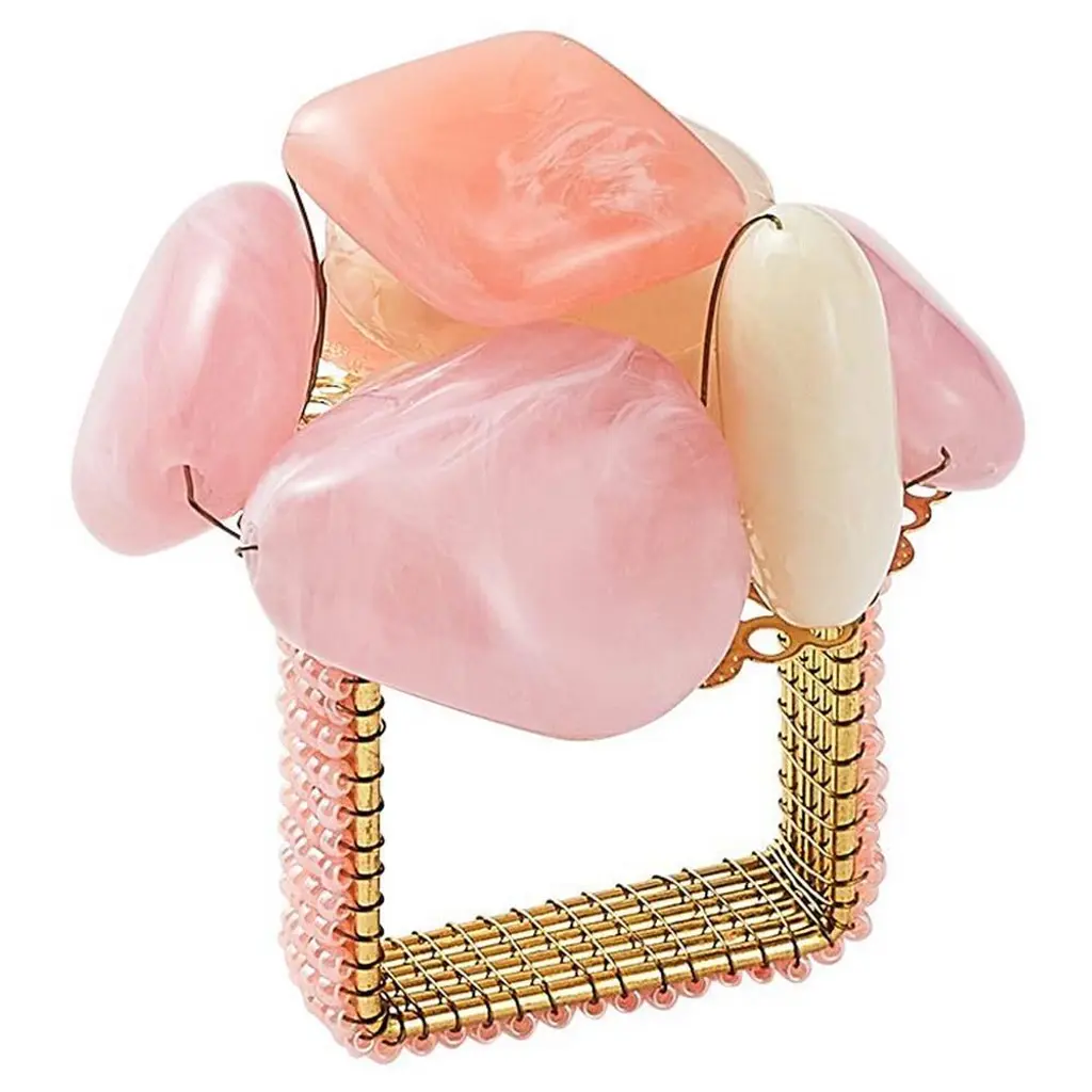 Sea Stone Coastal Beach White Acrylic Beaded Napkin Ring - Set Of 4