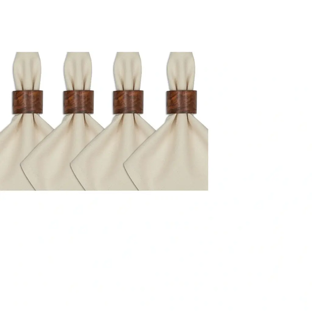 Set Of 4 Decorative And Rustic Stained Wood Band Napkin Rings 1.5" - N/a
