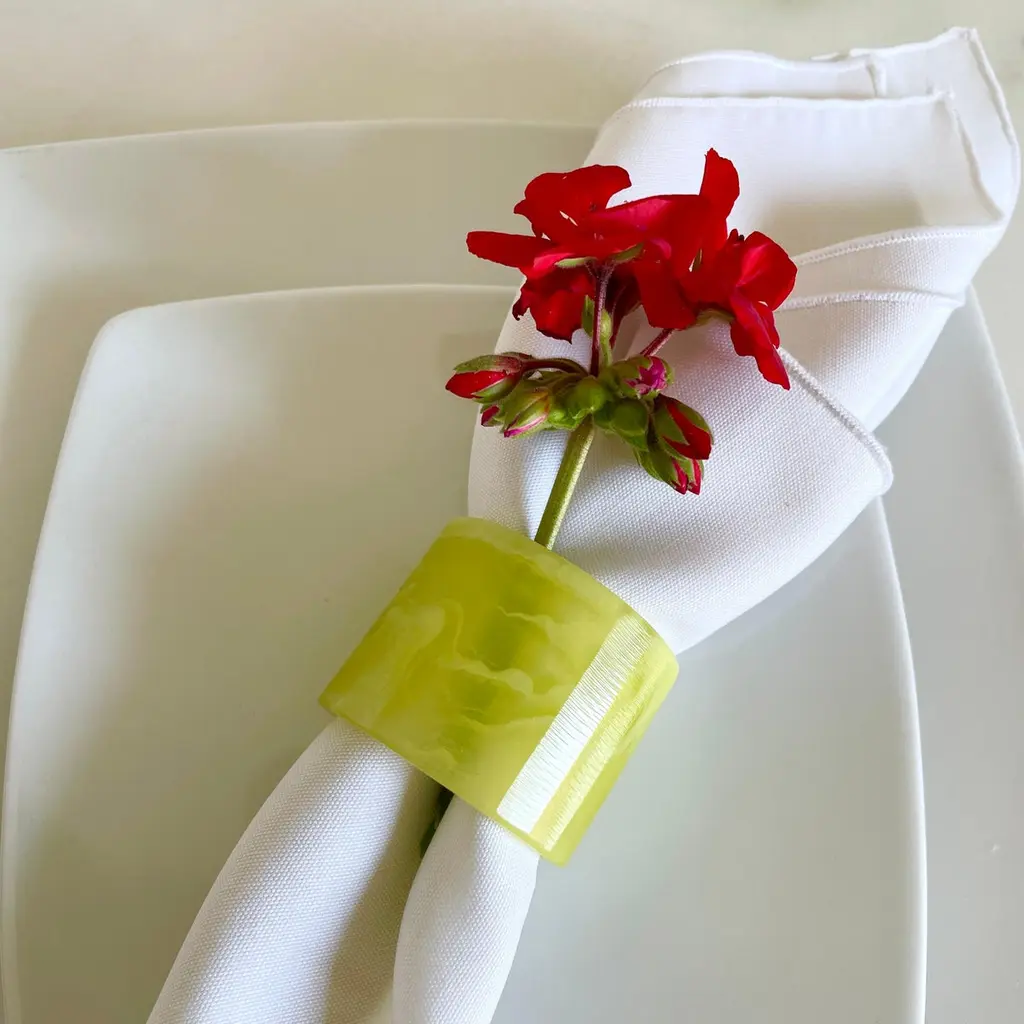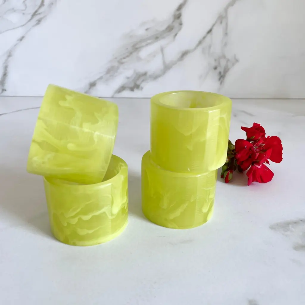 Set Of 4 Napkin Rings In Lime Green Swirl Resin By Paola Valle