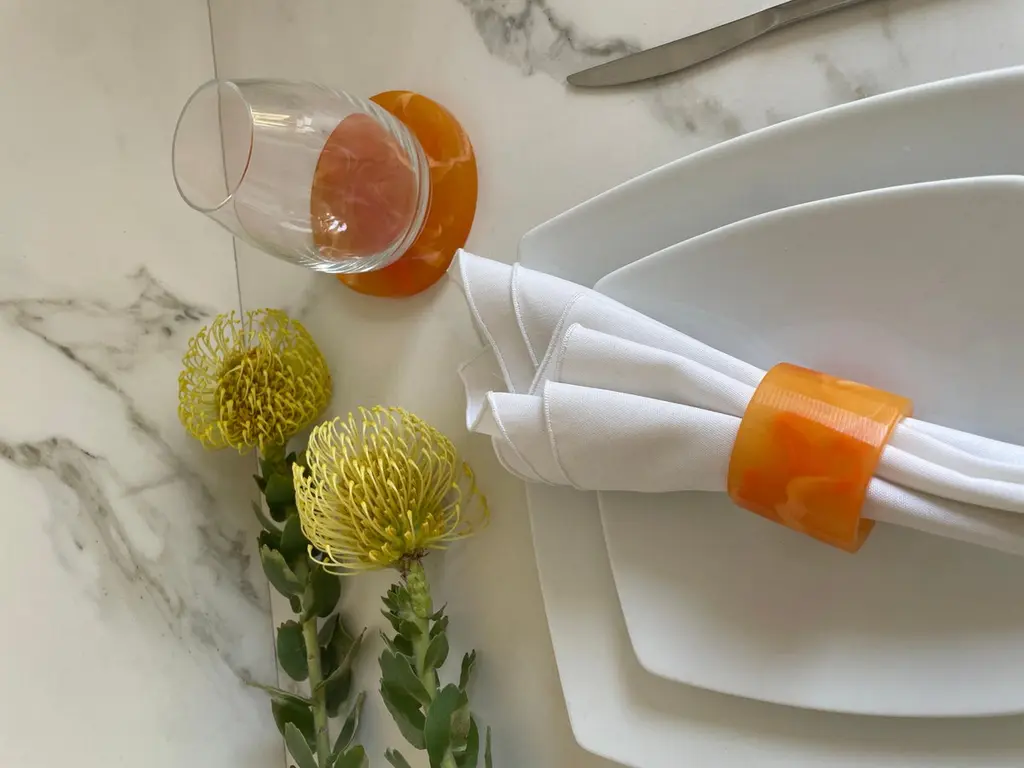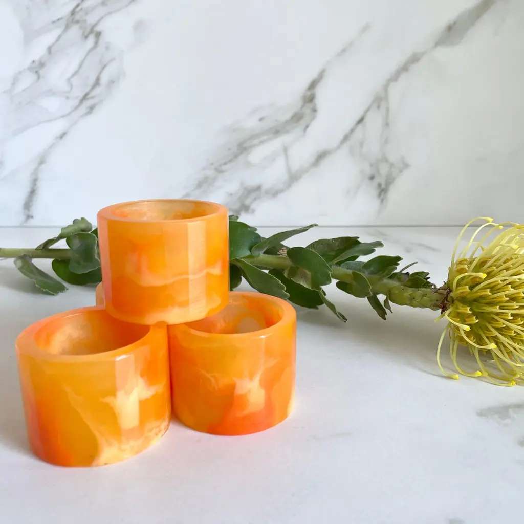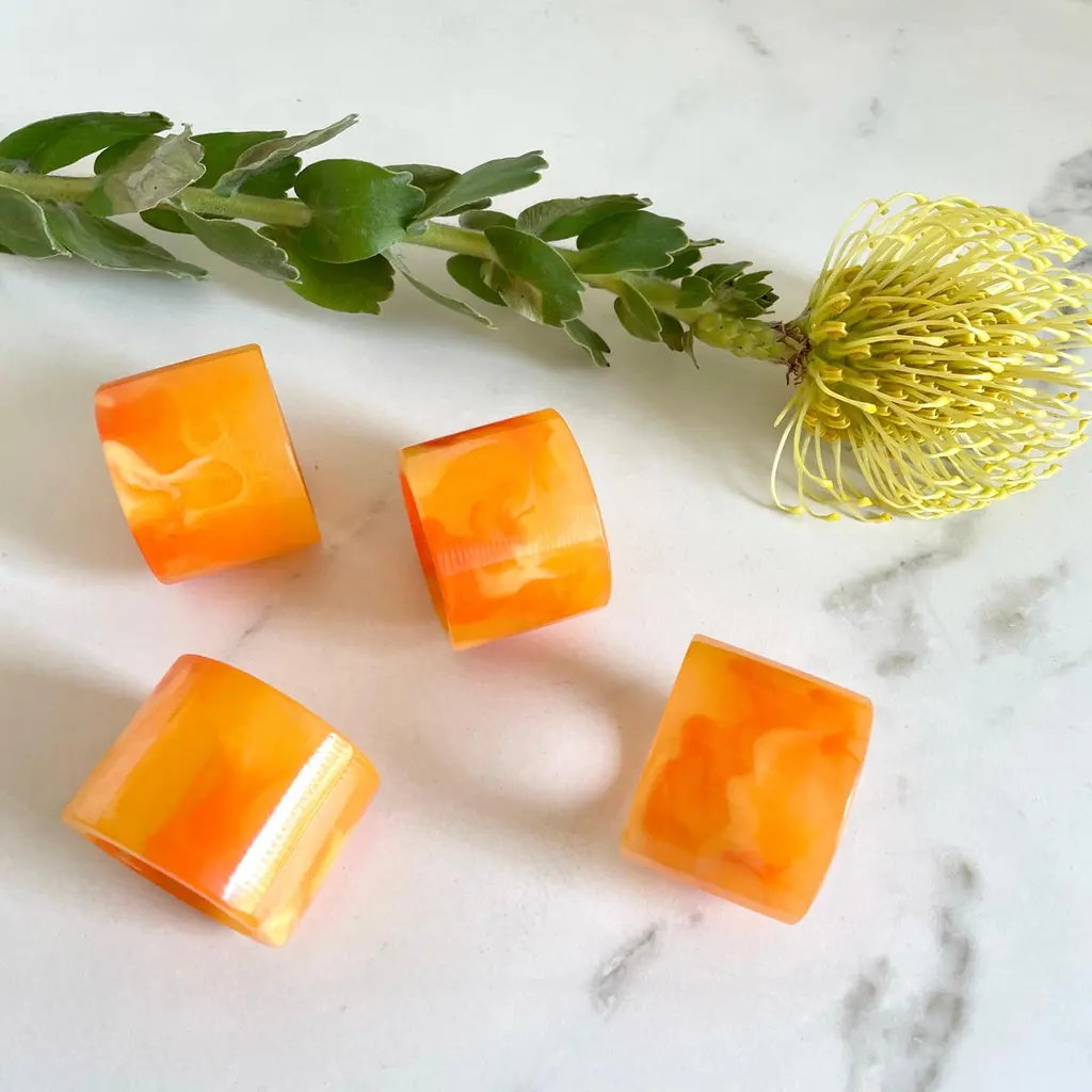 Set Of 4 Napkin Rings In Orange Swirl Resin By Paola Valle