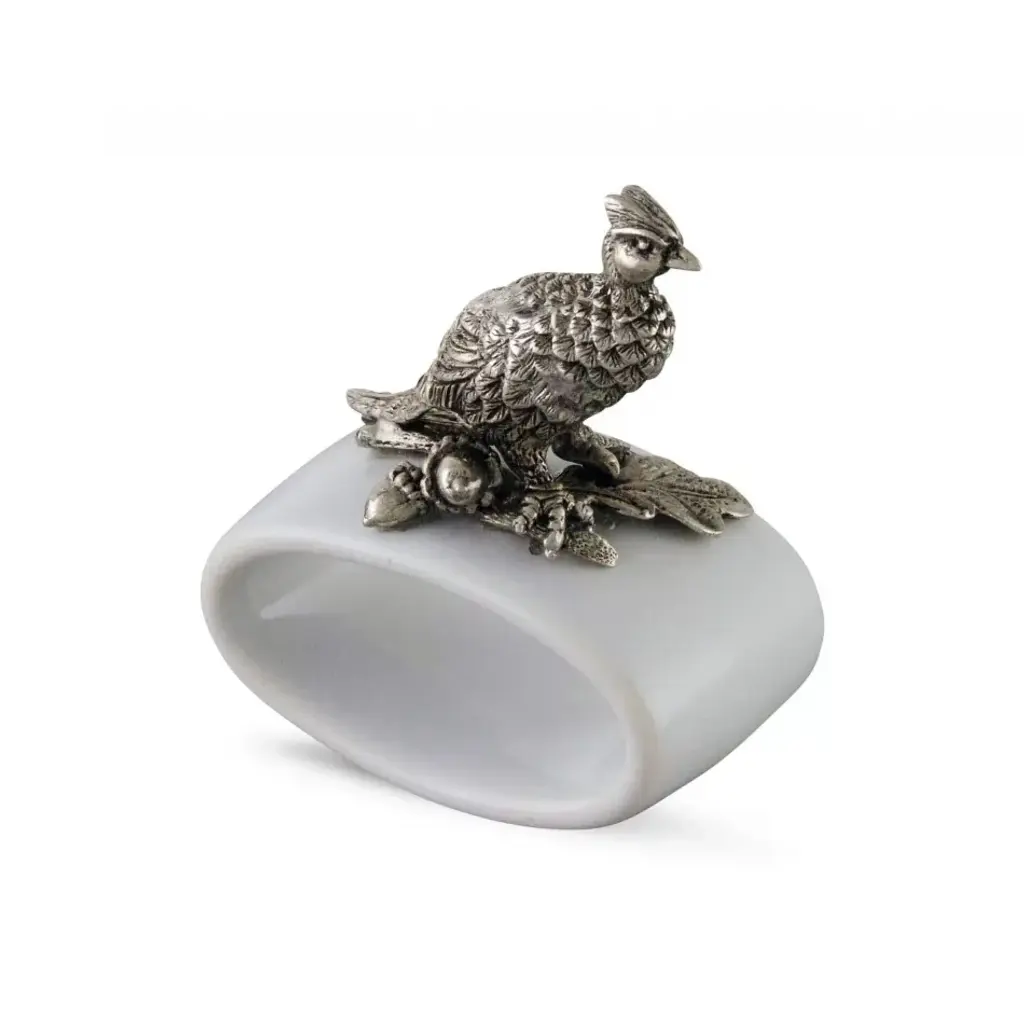 Chirp-Chirp. A bird perched on top of a twig designed to be a napkin ring, now that's something to look at! Unique and artful, this piece brings together the wondrous outdoors with the comfort of home. You can hear the rustling of the trees and the sweet melody of a bird singing in prayer-all in this napkin ring. They are magical.