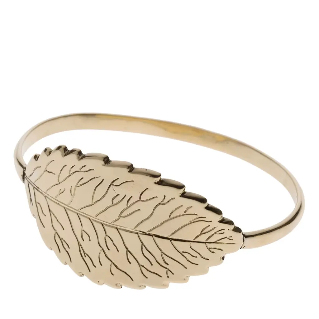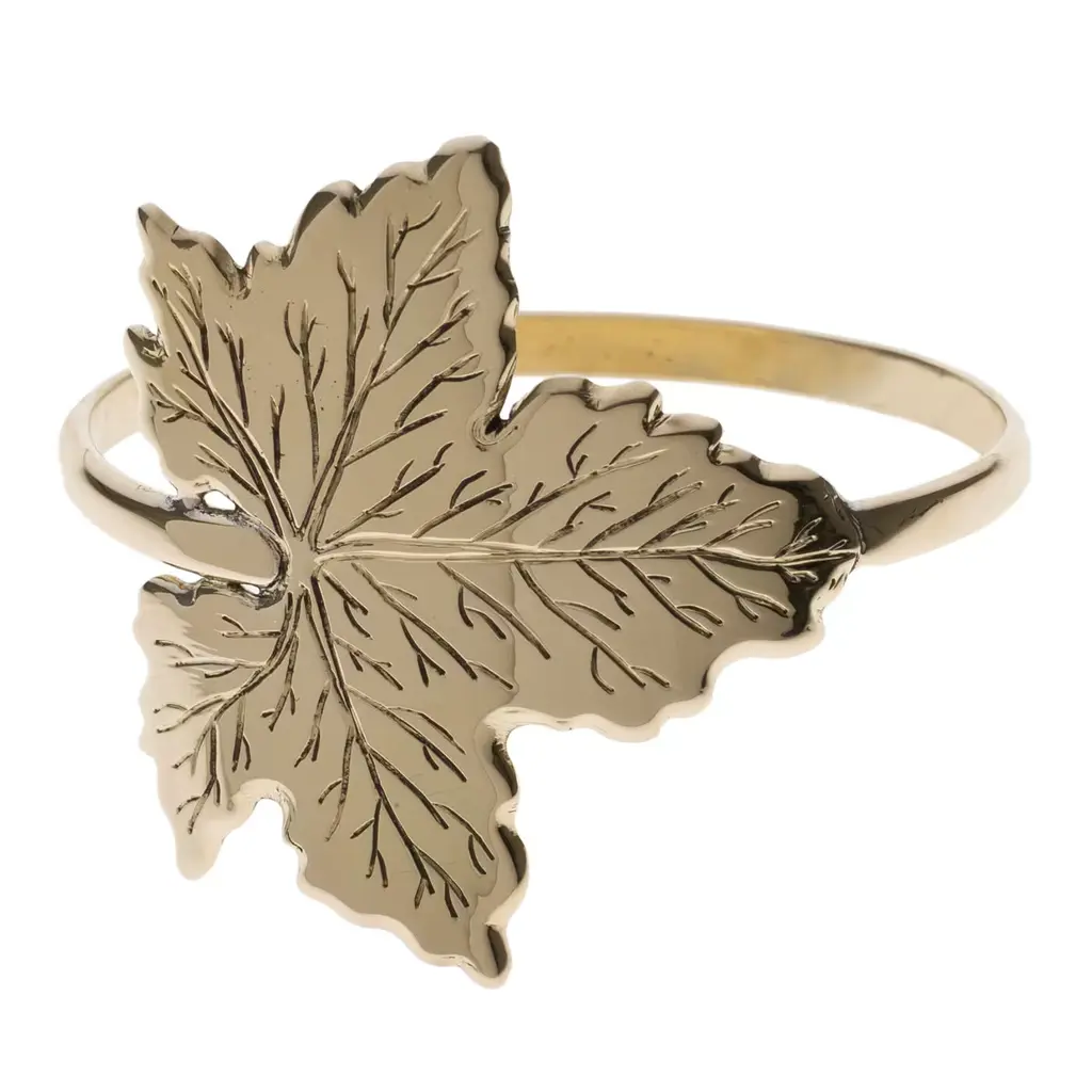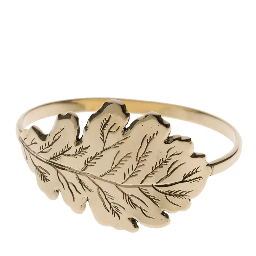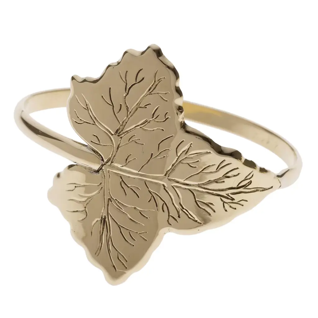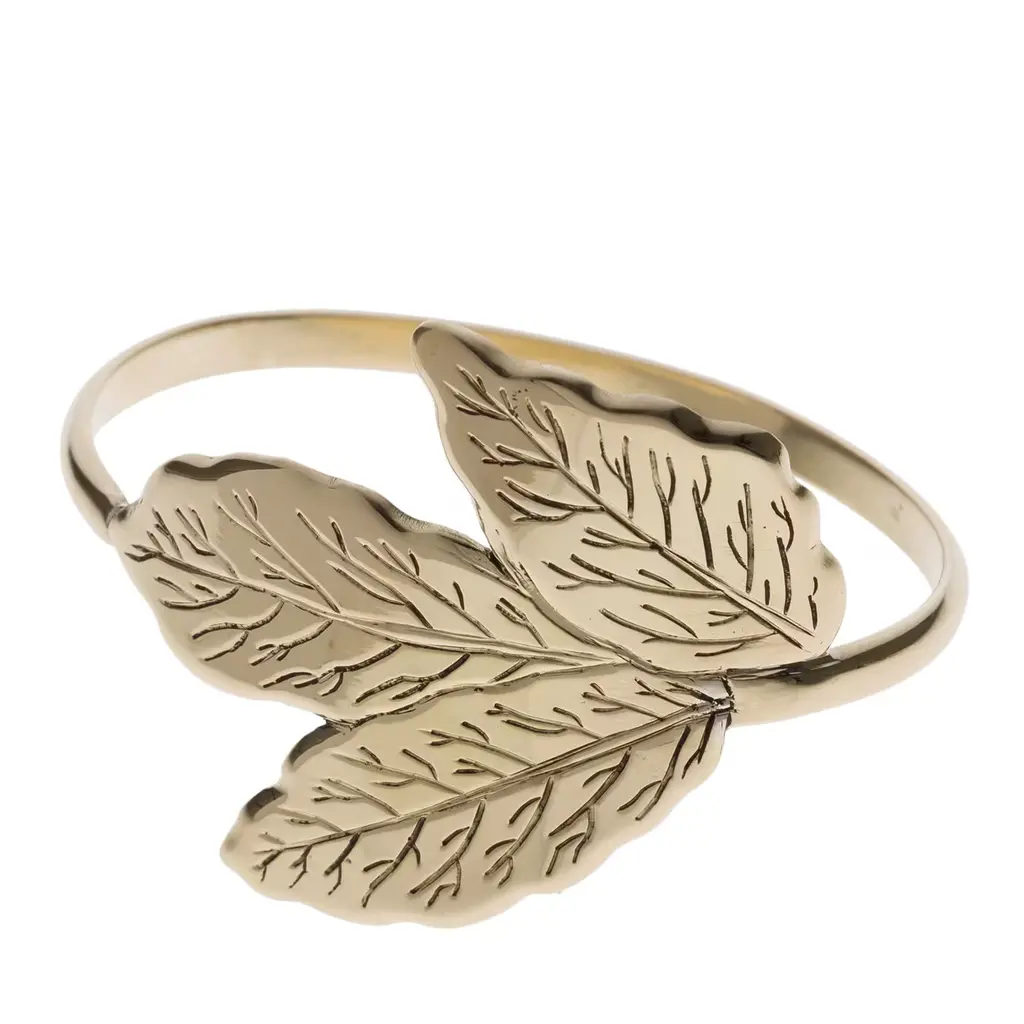 This elegant set of six napkin rings was crafted of brass and features six separate designs, each depicting a different leaf. These sophisticated additions to a dining table were crafted and etched by hand, according to traditional methods and will bring a charming touch to any home. The surface of each piece was given a rustproofing treatment so that these one-of-a-kind accessories can be long-lasting companions to dinners and parties.