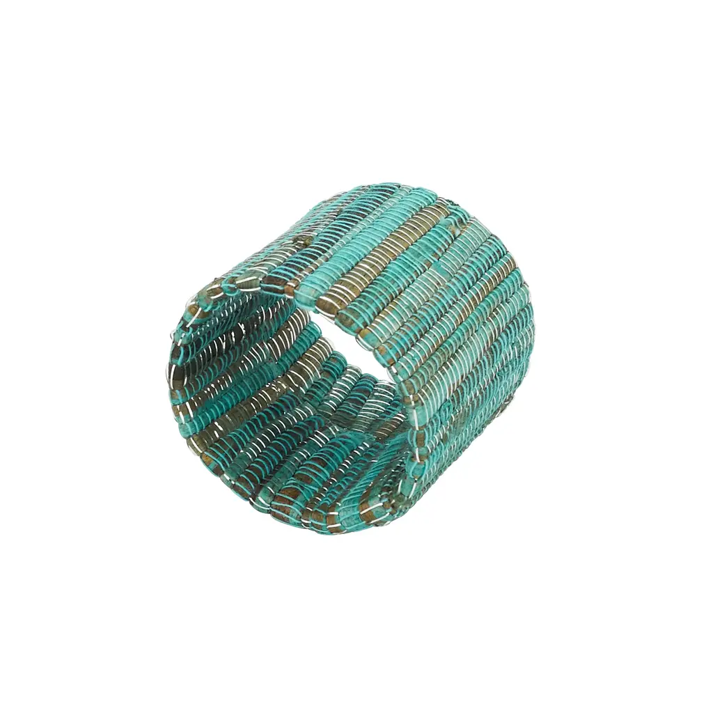 Shimmering Napkin Rings With Woven Nubby Design (Set Of 4) - Set Of 4 - Turquoise