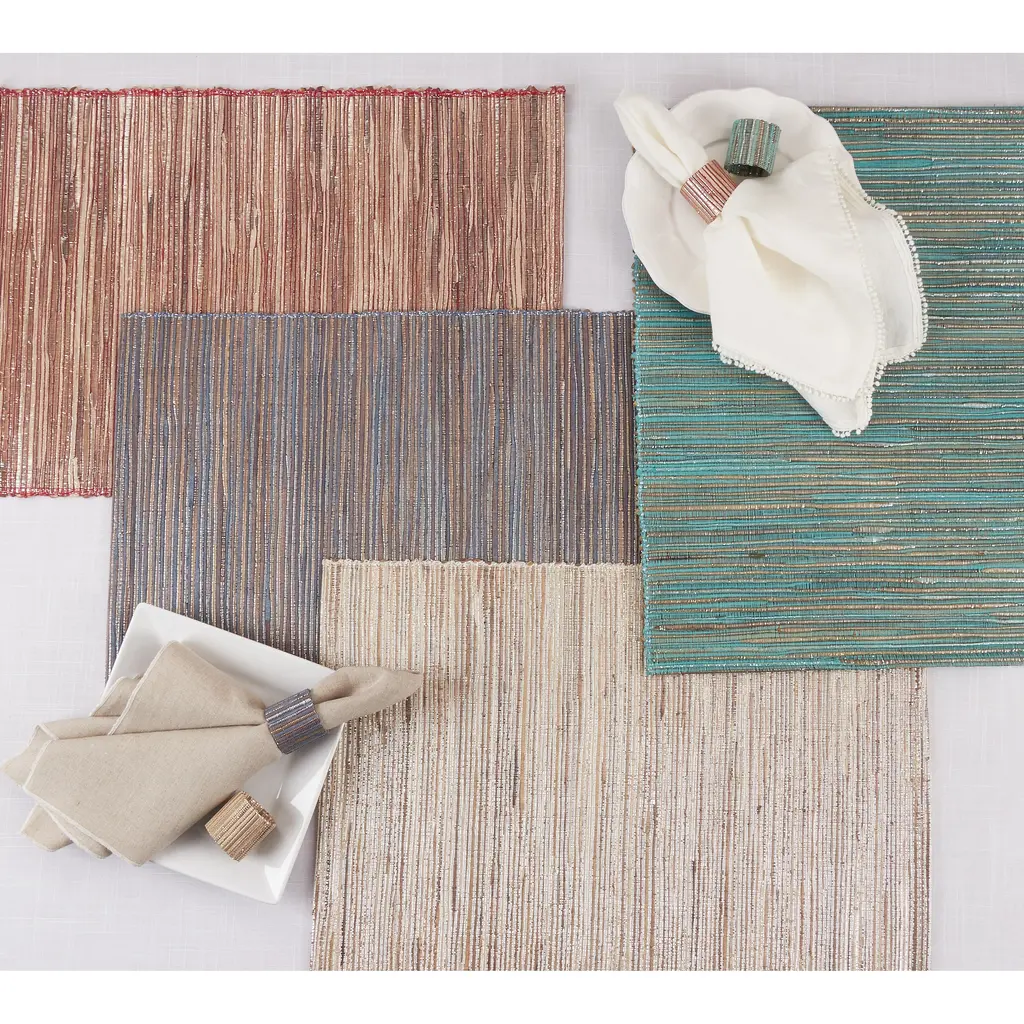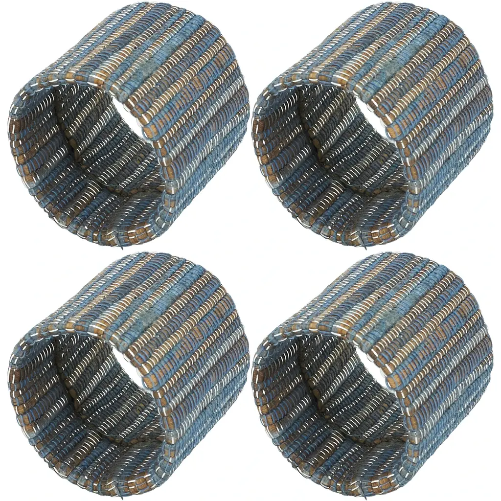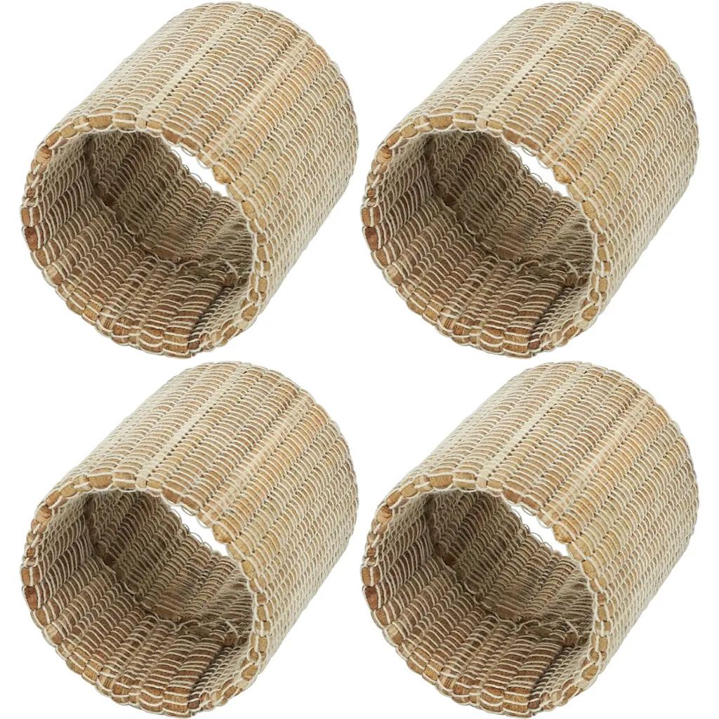 Perfect for casual dining and family get-togethers, the Shimmering Woven Nubby Napkin Rings are highly versatile and pair easily with a wide range of table linens and dinnerware. The set brings texture and depth to your table décor, adding the ideal touch to an informal setting. The napkin rings go well with linen table napkins.Features: