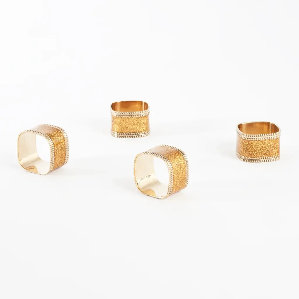 Sparkling Square Design Napkin Ring, Set Of 4 - Gold
