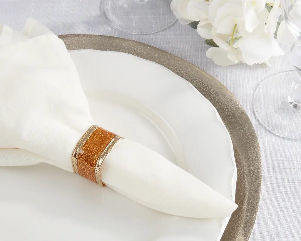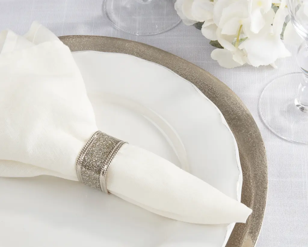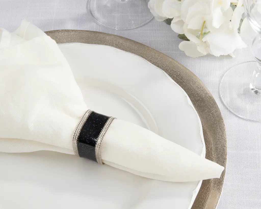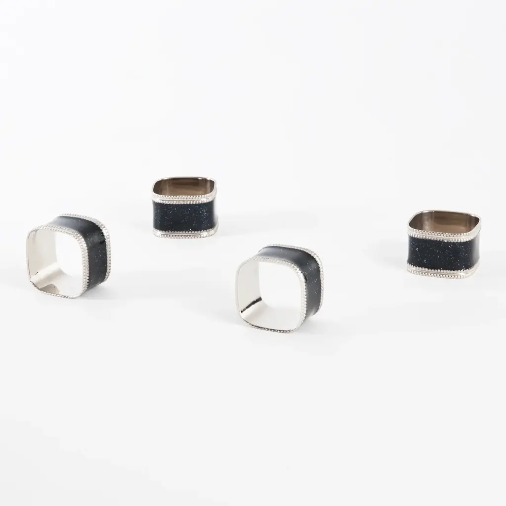 This gorgeous set of sparkling square napkin rings brings an old world charm to your table. It helps set an elegant, and refined tabletop. The napkin rings look best against solid colored dinner napkins.