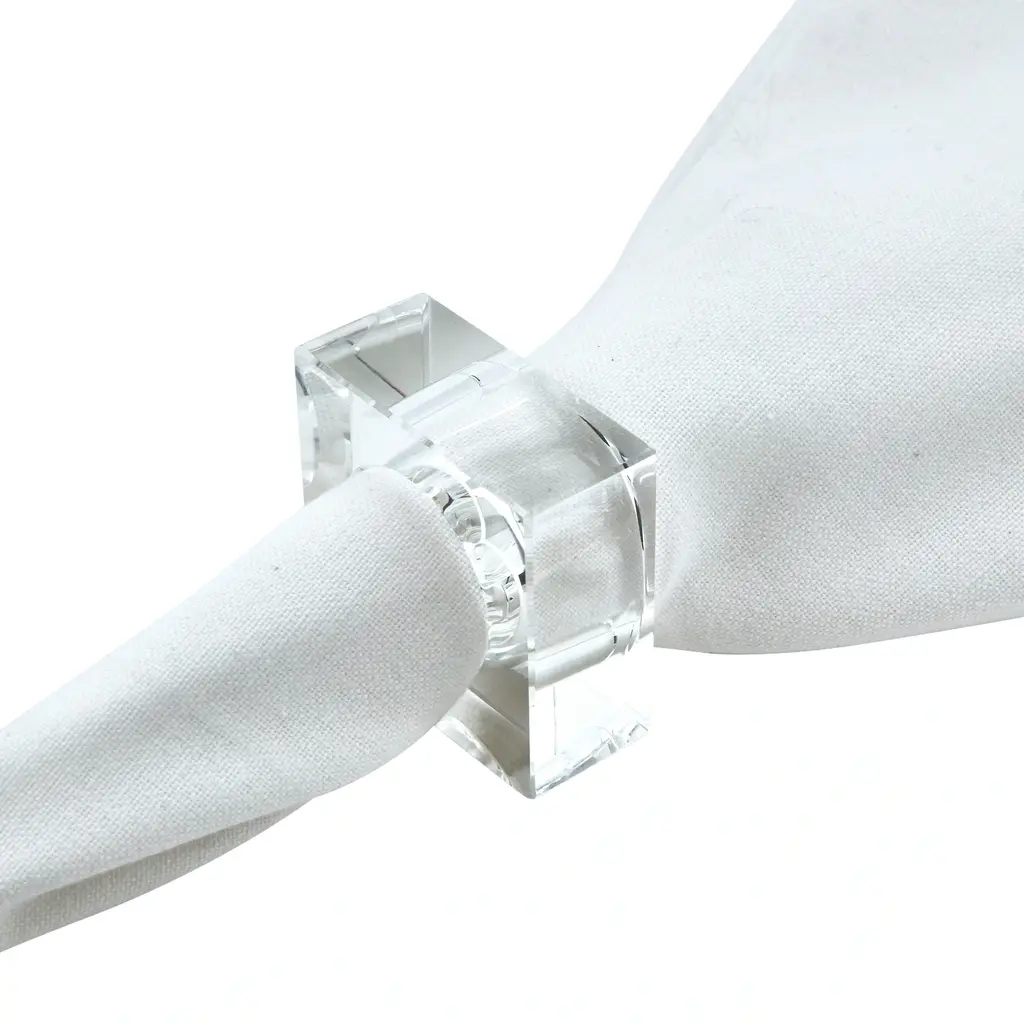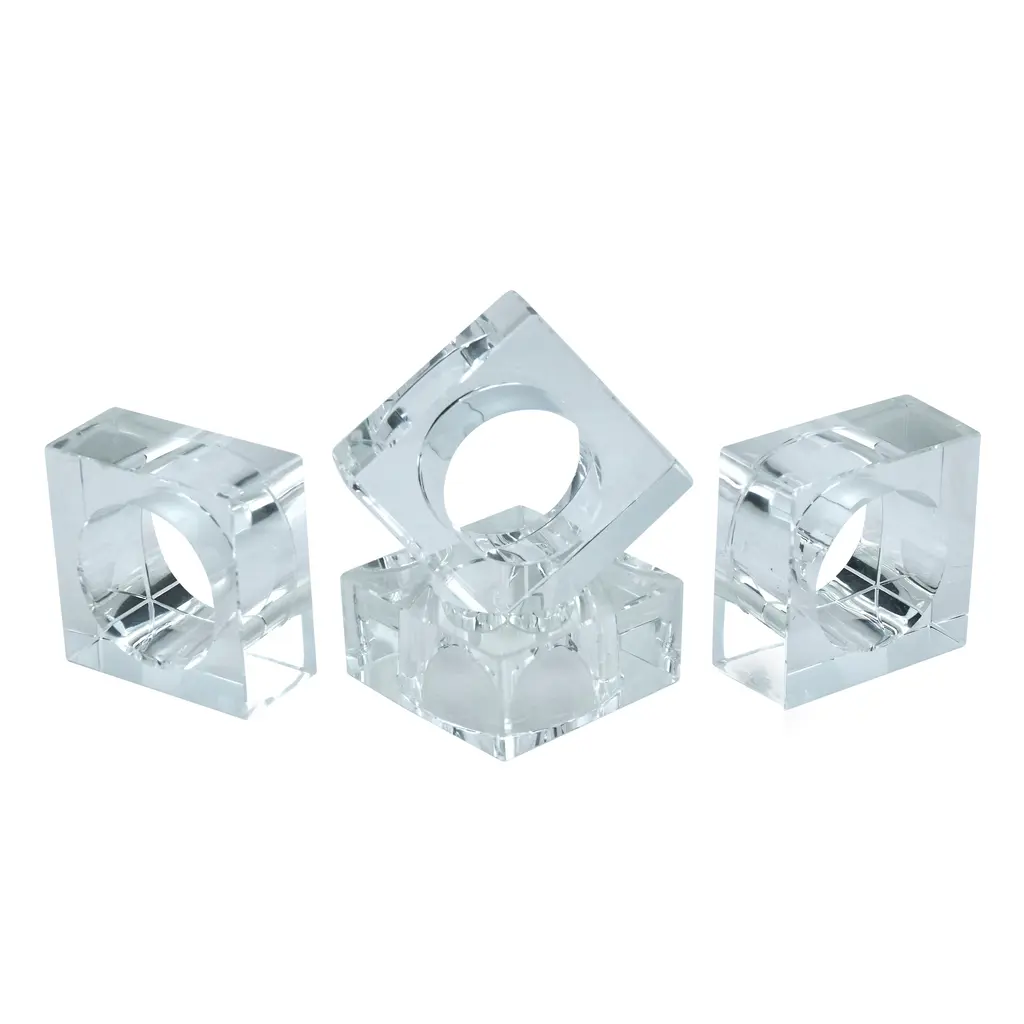 Square Block Design Crystal Glass Napkin Ring (Set Of 4) - Set Of 4