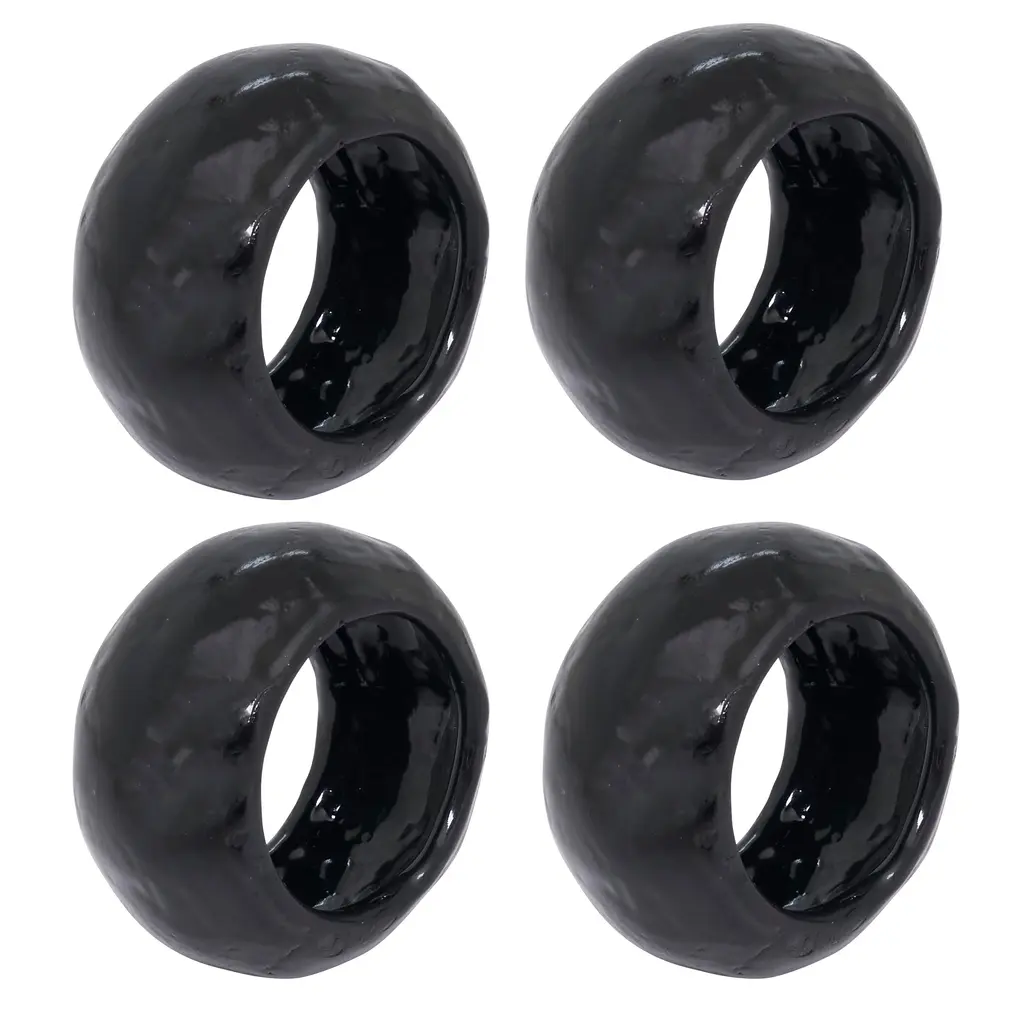 Textured Capiz Napkin Ring (Set Of 4) - Black - Set Of 4
