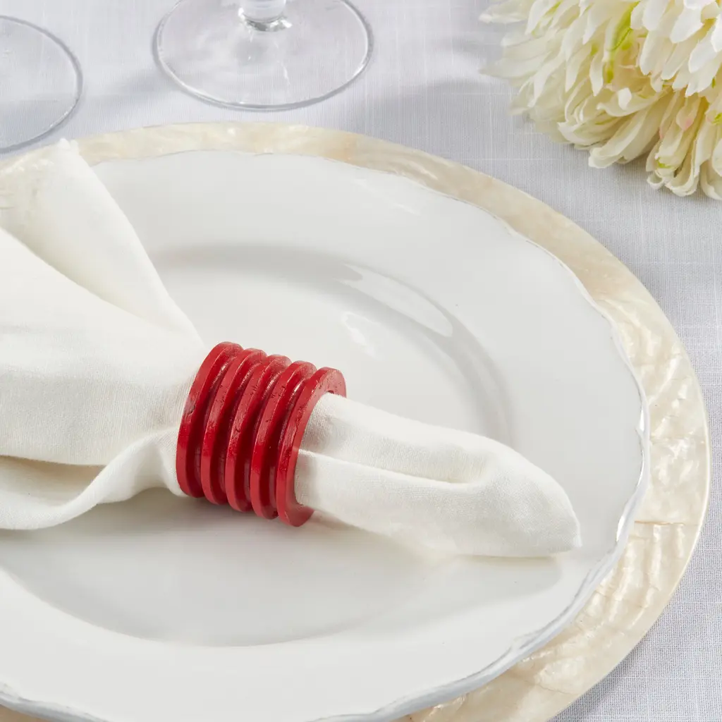 Textured Natural Wood Napkin Ring (Set Of 4) - Red - Set Of 4
