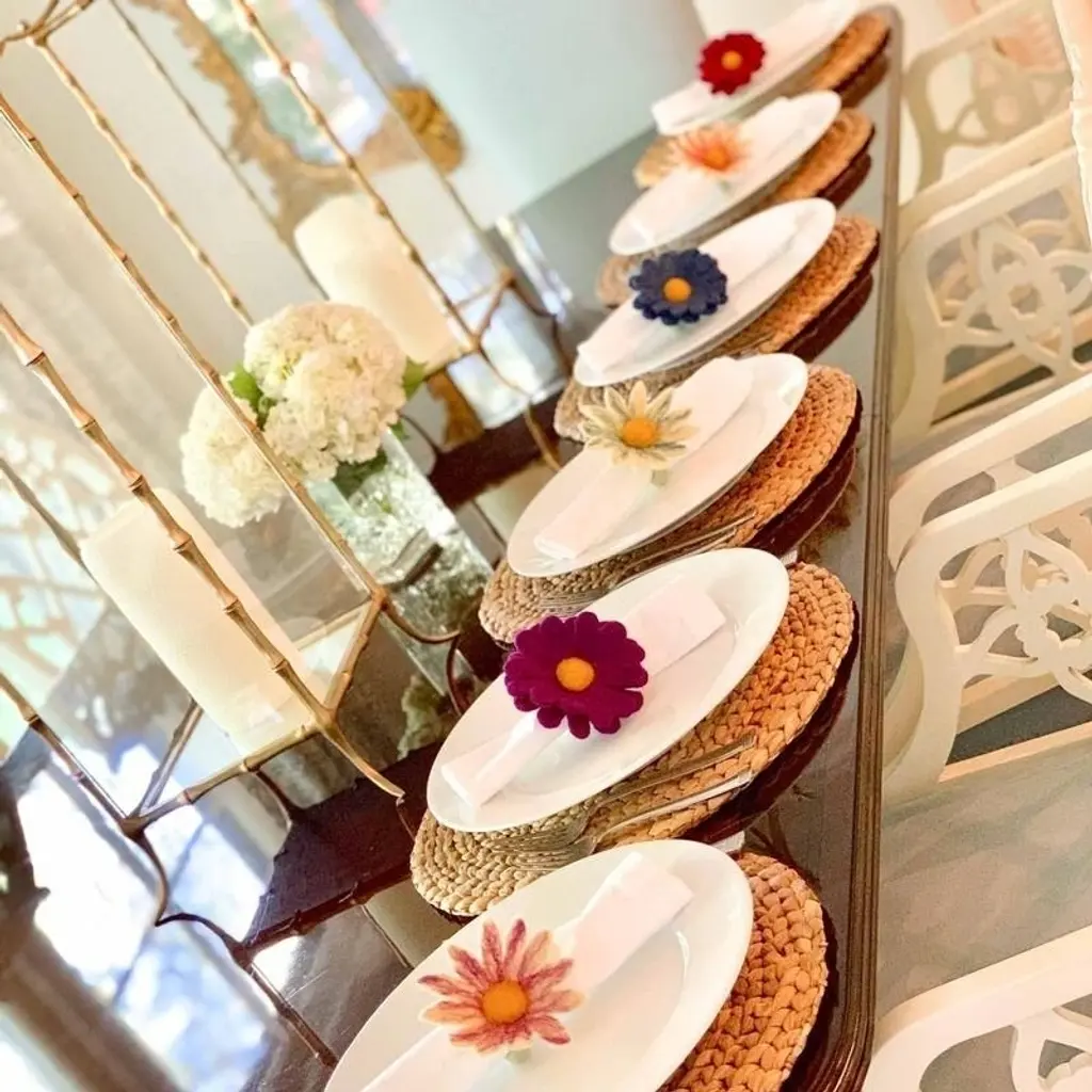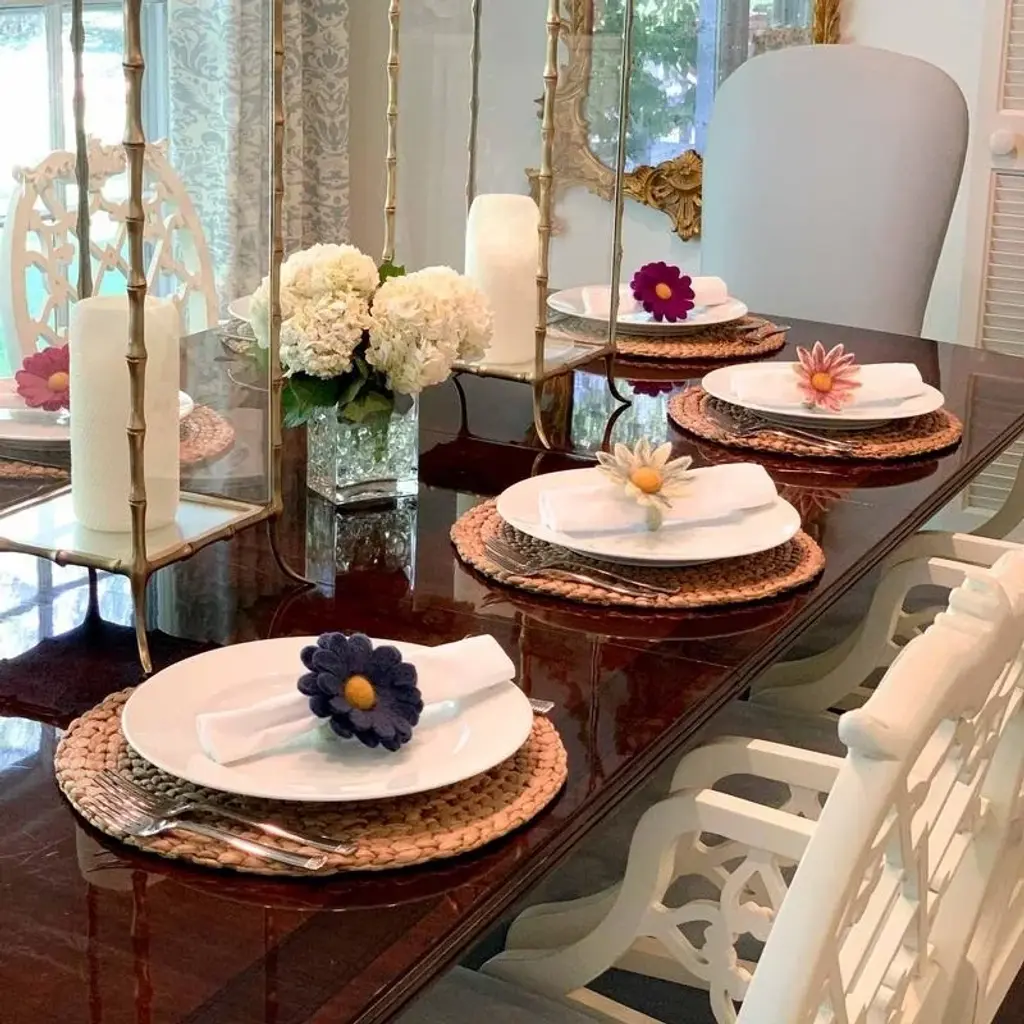 The Curated Nomad Thrift Handmade Felt Daisy Napkin Rings (Set Of 6) - Multi