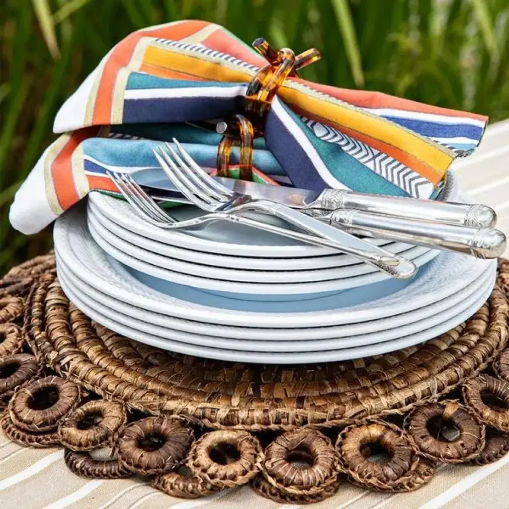 Looping swirls of translucent ambers and browns neatly tie your napkin in place with a permanent knot. Audrey would have loved this. Based in Connecticut, Juliska is committed to bringing elegant European design into our modern homes. Since its founding in 2001, when David and Capucine Gooding began by working with artisans outside of Prague to reproduce antique Bohemian glass pieces, every piece from Juliska has shared a rich heritage spanning six centuries of European design. Juliska's creations are timeless, romantic and effortlessly chic.