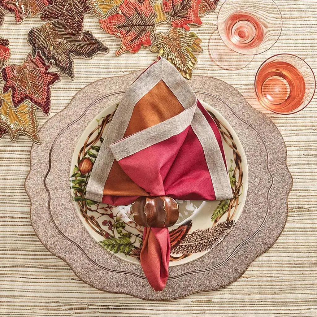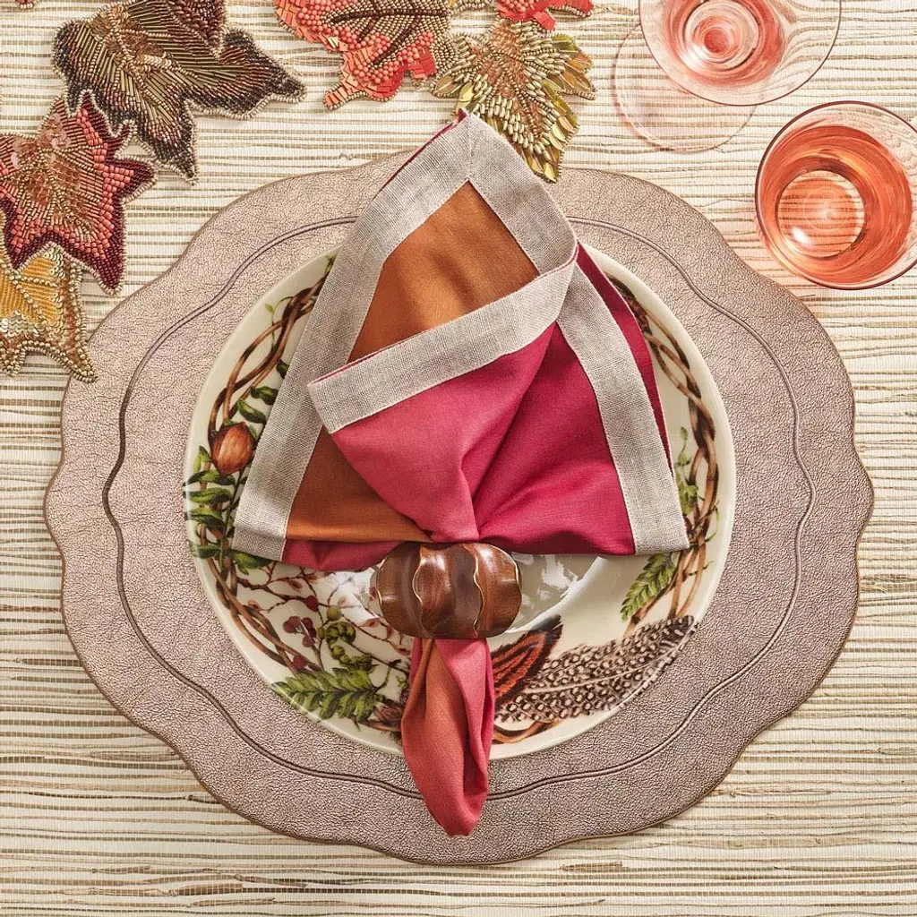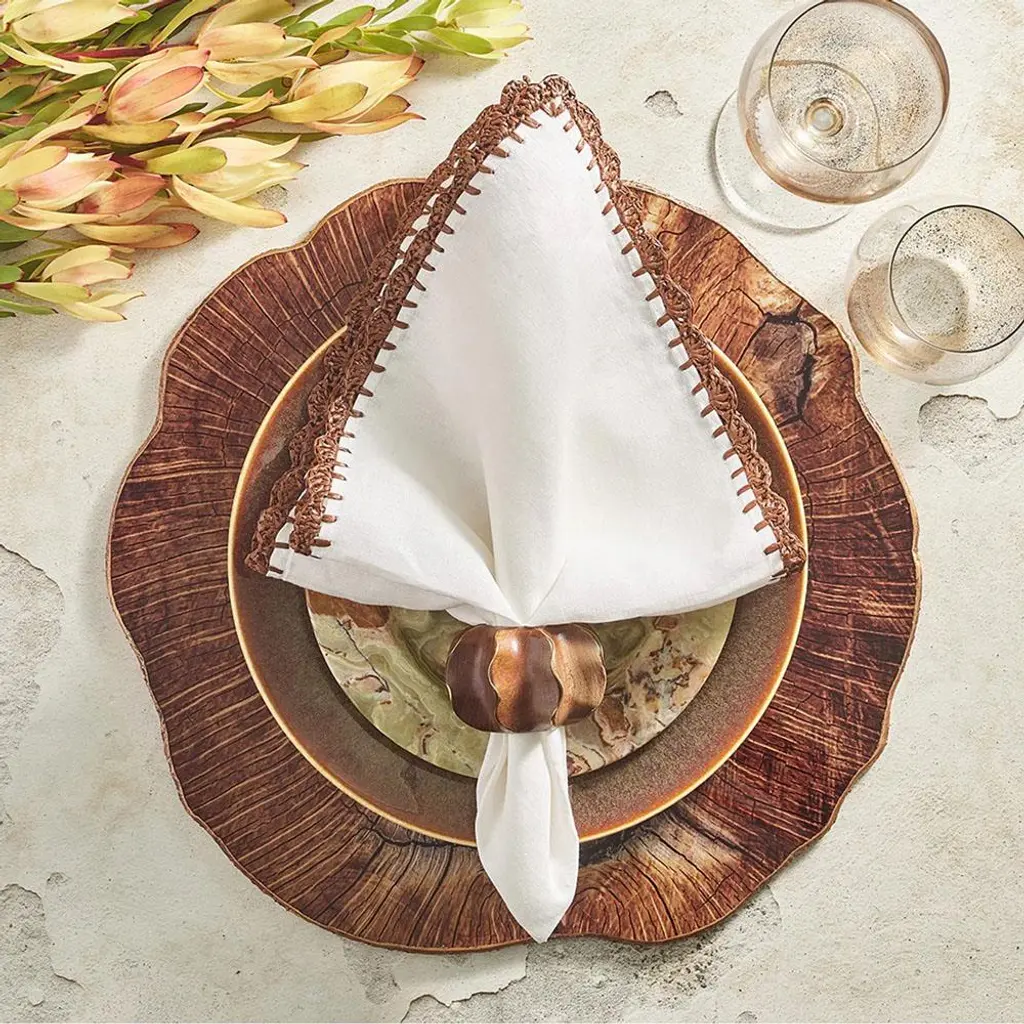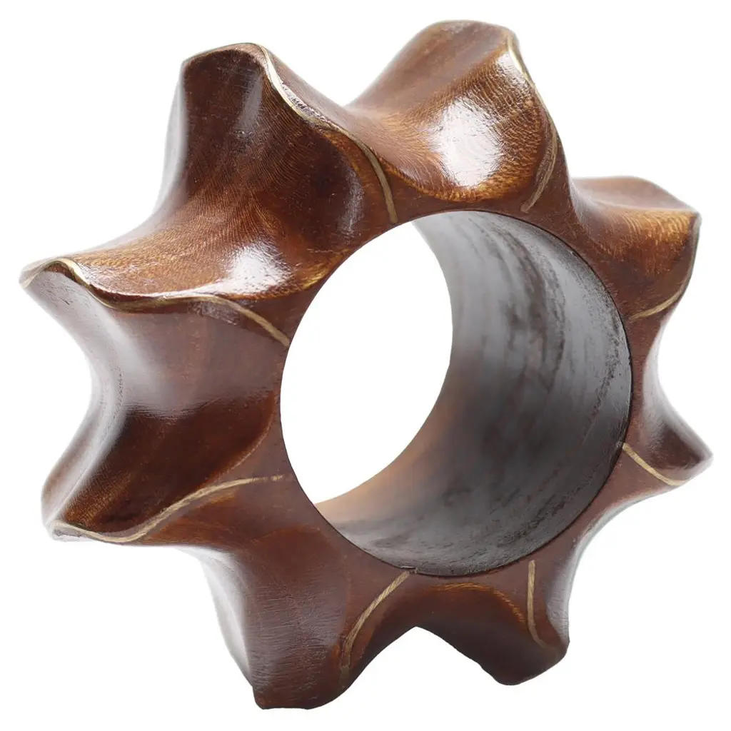 Twist Rustic Lodge Brown Wood Sun Napkin Ring - Set Of 4