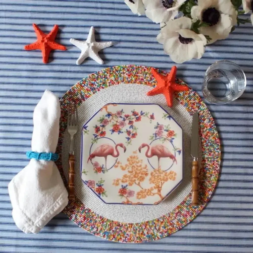 Beads are given a sophisticated twist and an easy elegance in these napkin rings. They are a perfect finishing touch to any place setting. Available in turquoise and red.