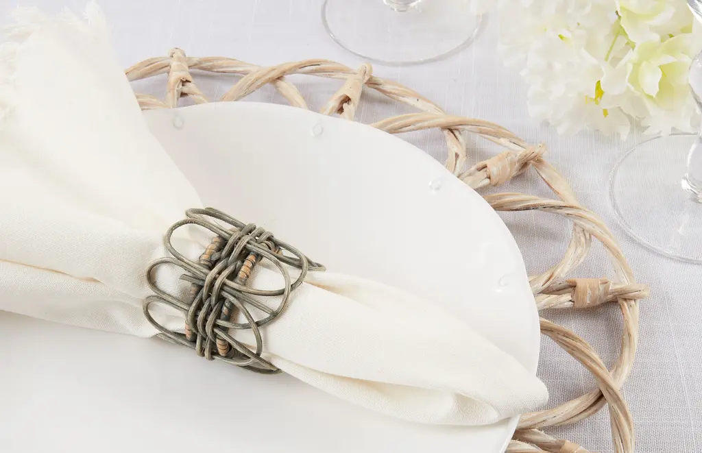 Ideal for everyday meals and casual dining, these stylish Twisted Design Rattan Napkin Rings bring texture and dimension to your tabletop. Made with 100% rattan, the set adds an organic look and feel to each and every place setting and it's easy to pair with a wide range of linens.