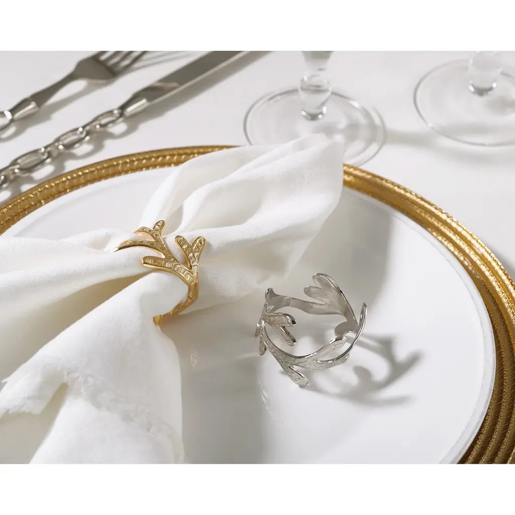 Style your contemporary table with these vine-inspired napkin rings from Saro Lifestyle. The textured metal rings will add a hint of botanical beauty to nearly any napkin. Choose from two finishes to pair with your existing flatware.Features: