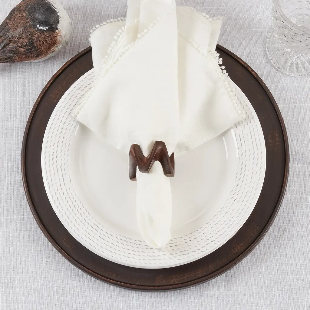 The W Design Wood Napkin Rings are a great way to add style and charm to a casual dinner table. Their natural look and feel doesn't overwhelm or overshadow, yet their jazzy design elevates the tabletop decor. The set is easy to pair with a wide range of tableware, working well with dark color charger plates.
