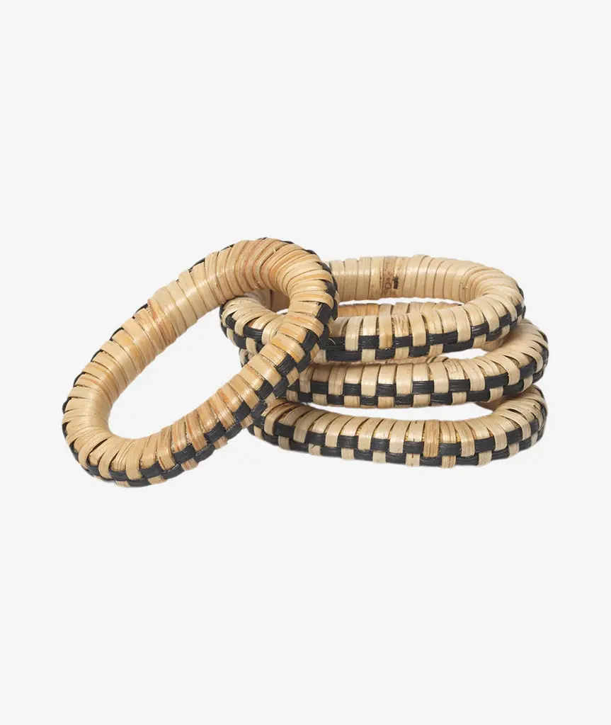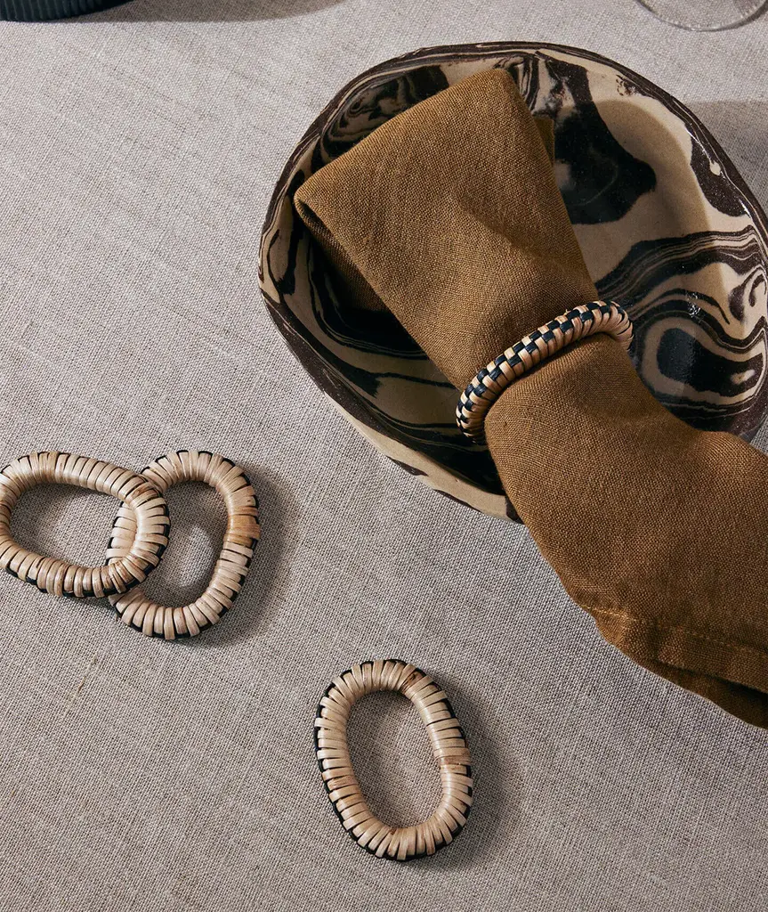 Elevate your table setting with a delightful infusion of boho and vintage aesthetics. Crafted from braided rattan with interwoven black detailing, the Weave Napkin Rings instantly add texture and tactility to any setting.