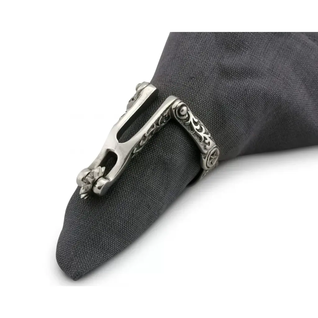 Vagabond House's pure pewter Western Spur Napkin Rings will truly kick your table setting up a notch. Impressively detailed rings feature a bas relief western, Concho inspired design, highlighted by antiquing the pewter. A working "spur" finishes the creatively western design. Vagabond House is a family-owned American company specializing in fine pewter tableware, servingware and giftware. Largely inspired by nature, their exclusive products are designed to be unique, functional heirlooms for those who seek to express tradition and style in both family and formal entertaining.